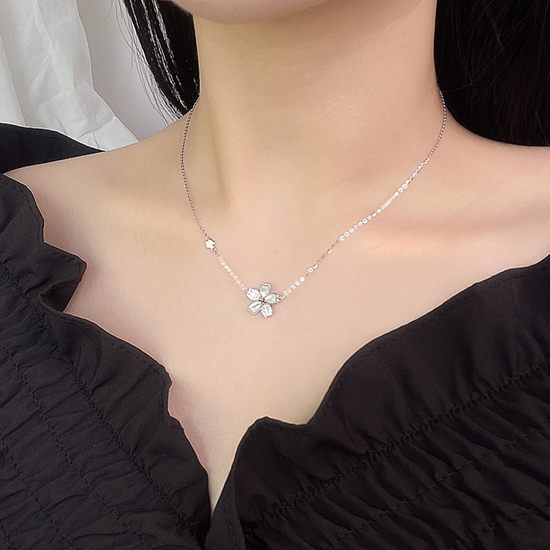 s 925純銀花ネックレス女性ファッション小清新軽贅沢小人数高級感小花鎖骨ネックチェーンネックレス美しい首元ネックレスめが可愛い チョーカーネックレスネックレス 美しい首元ネックレス短めが可愛い チョ