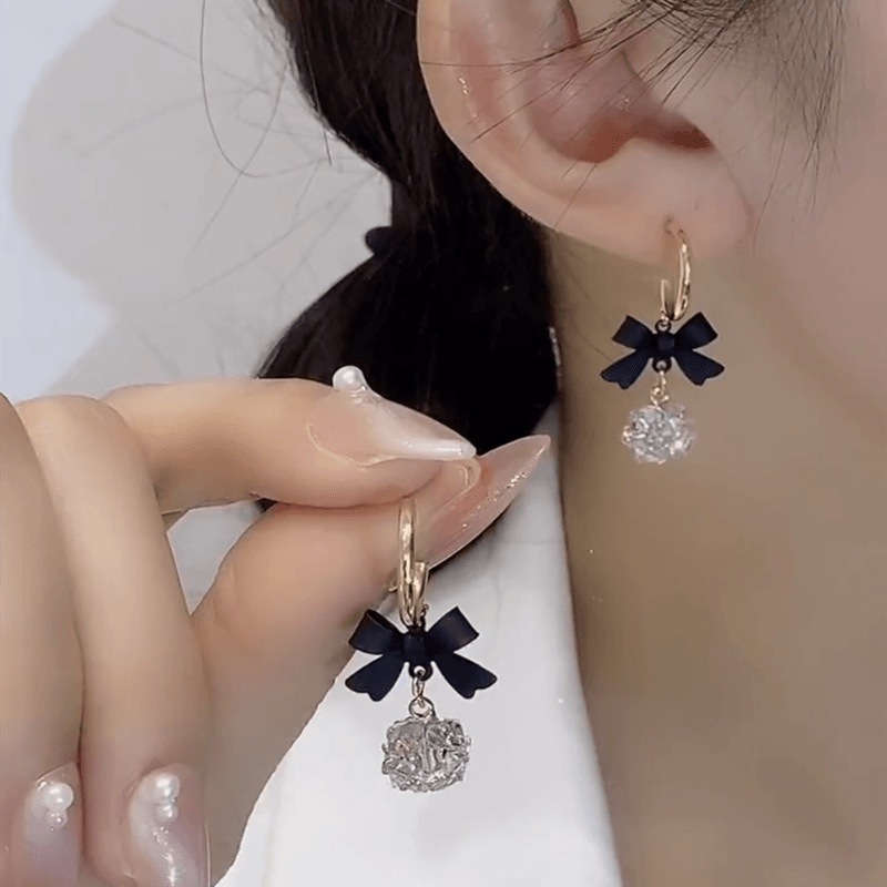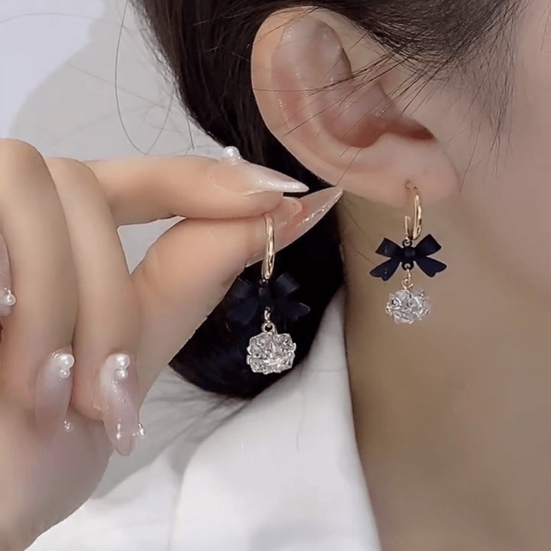おしゃれで洗練されたリボンドリルボールイヤリング耳ボタンピアス夏のピアス冬のピアスイヤリングピアスイヤーカフ春の耳元をおしゃれに イヤリング