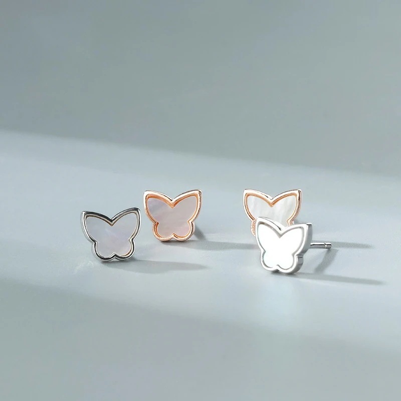 s 925純銀小蝶ピアス女子小柄学生小清新仙女イヤリング白貝耳飾り森系百合夏のピアス冬のピアスイヤリングピアスイヤーカフ春の耳元をおしゃれに