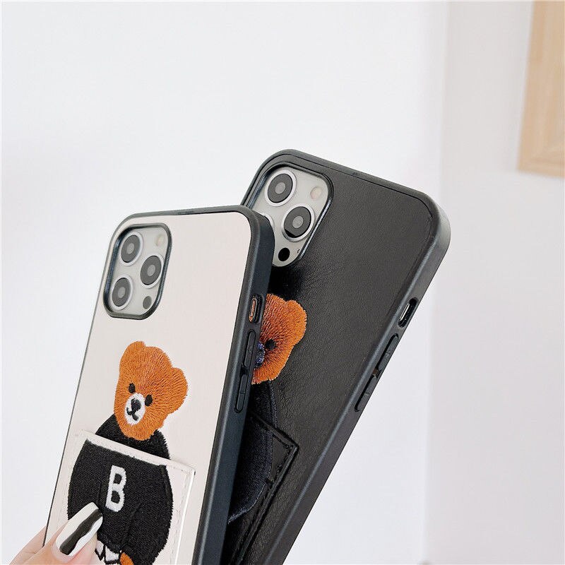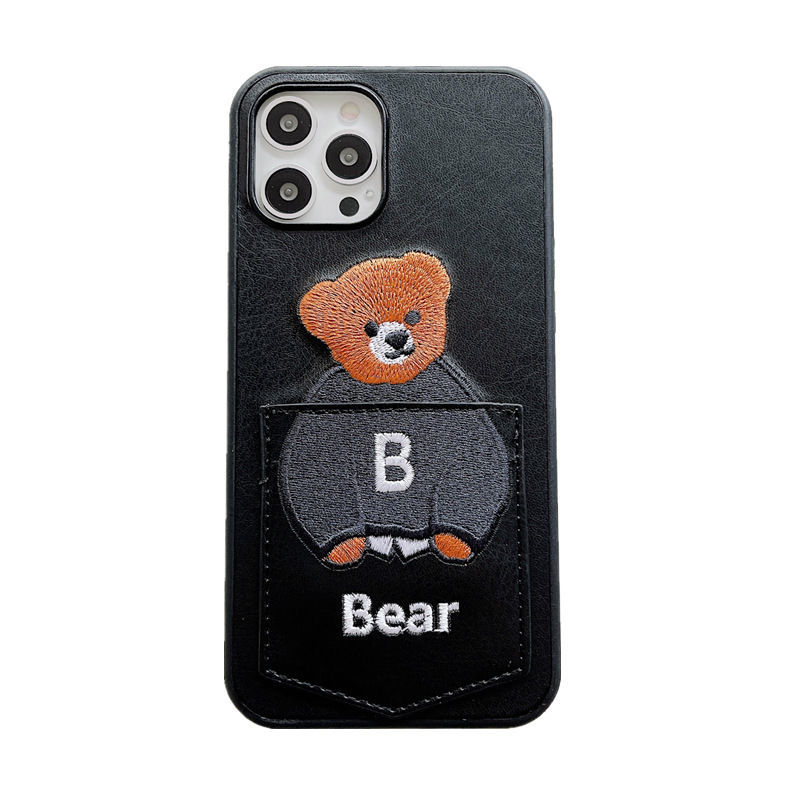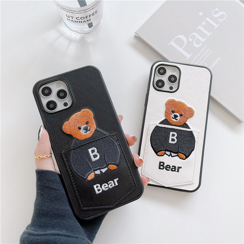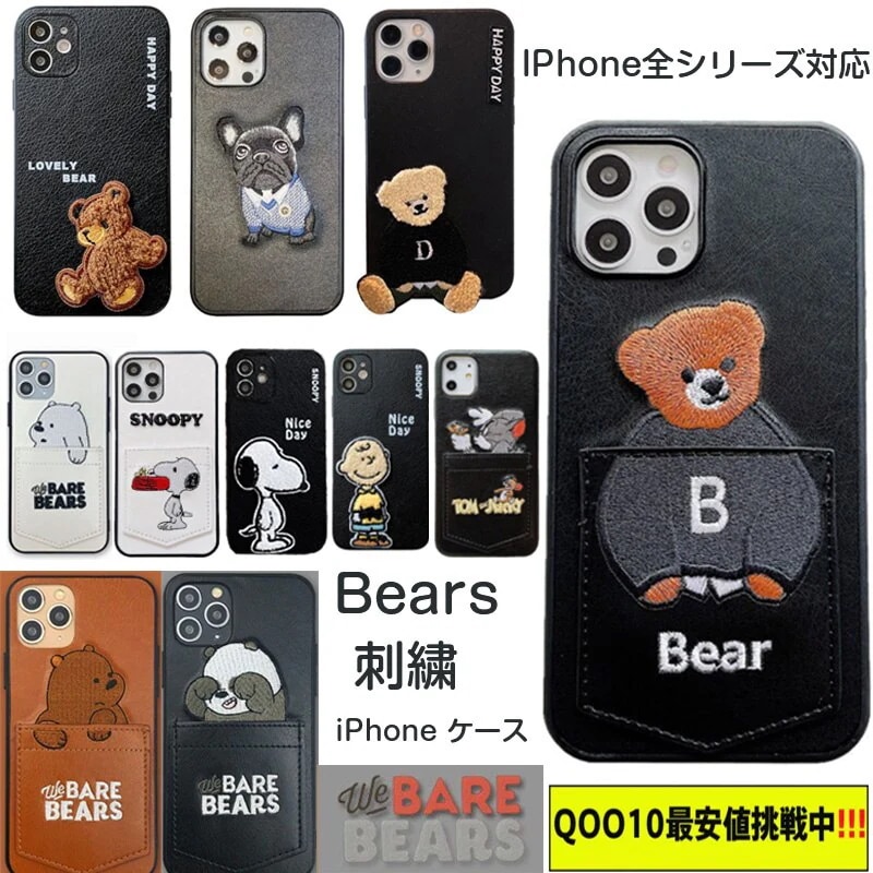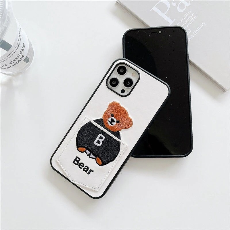 韓国 iphone14ケース iphone14pro ケース iphone13 ケース iphone13pro ケース Bears Pocket 刺繍 iphone11 12 7 8 ケース