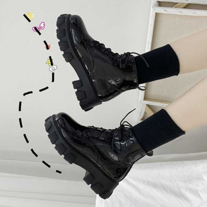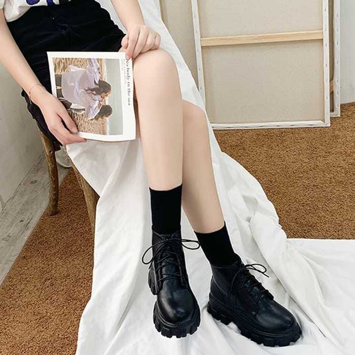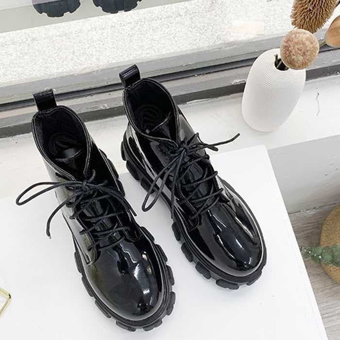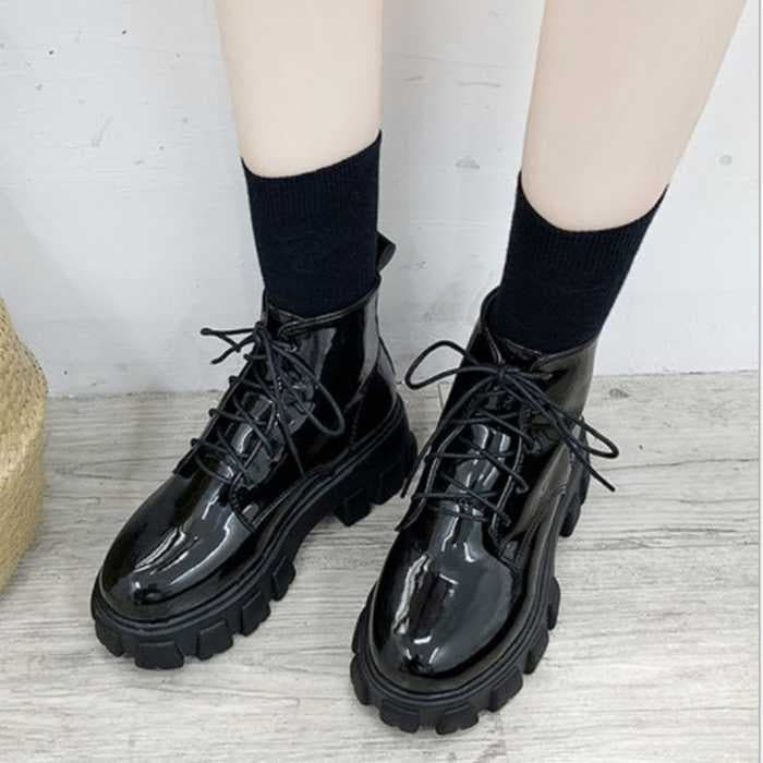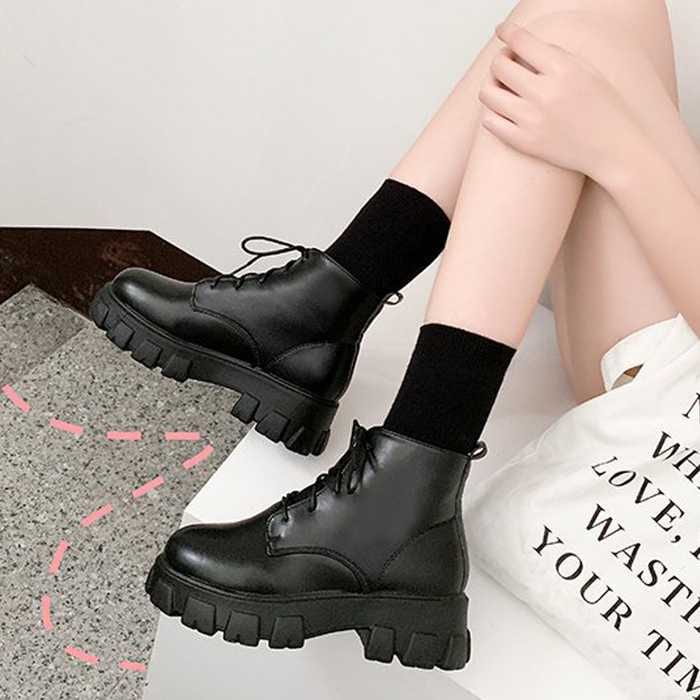 ショートブーツ レディース厚底ブーツ韓国ショートブーツ 黒 おしゃれ シューズ 美脚編み上げブーツ靴 ワーク エンジニアブーツ