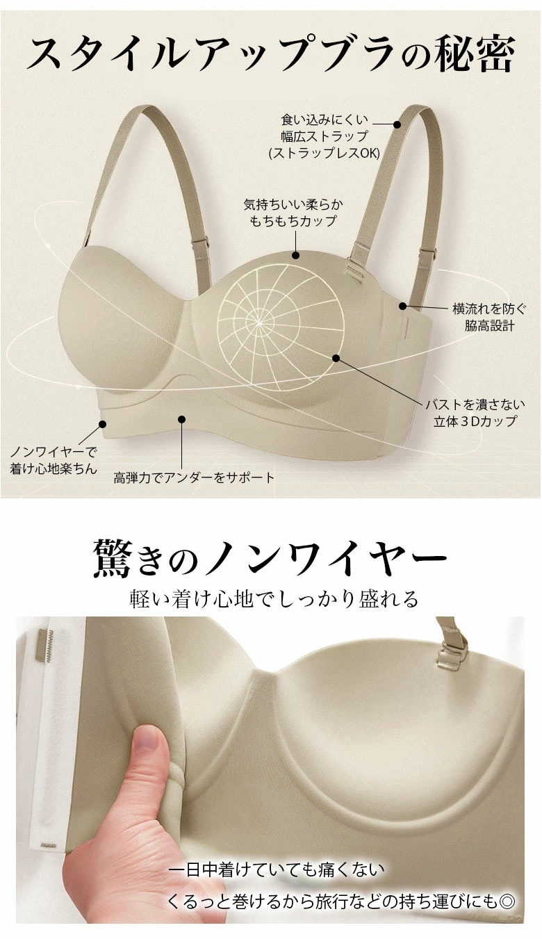 丸盛り ブラジャー もちもち 立体カップ ブラ レディース 立体カップ ノンワイヤー 脇高 シンプル 旅行 らくちん 脇肉 下着 インナー カップ S M L XL ブラ [s
