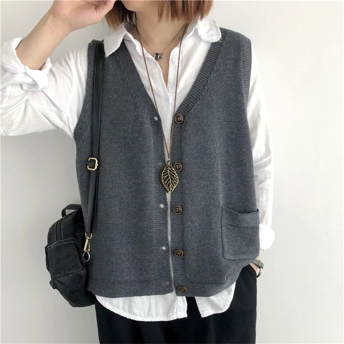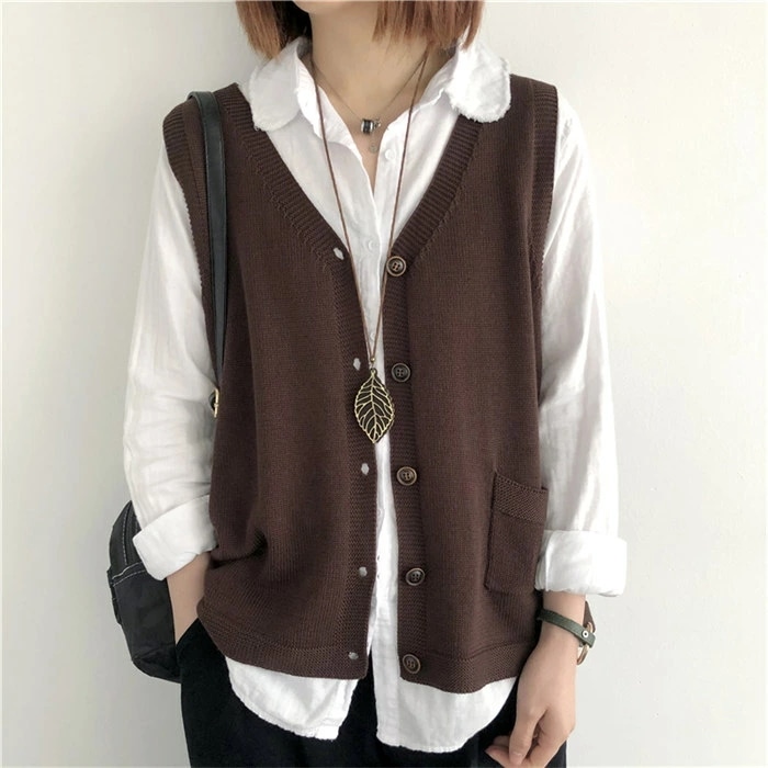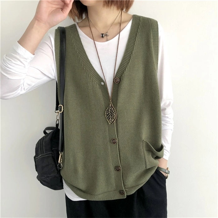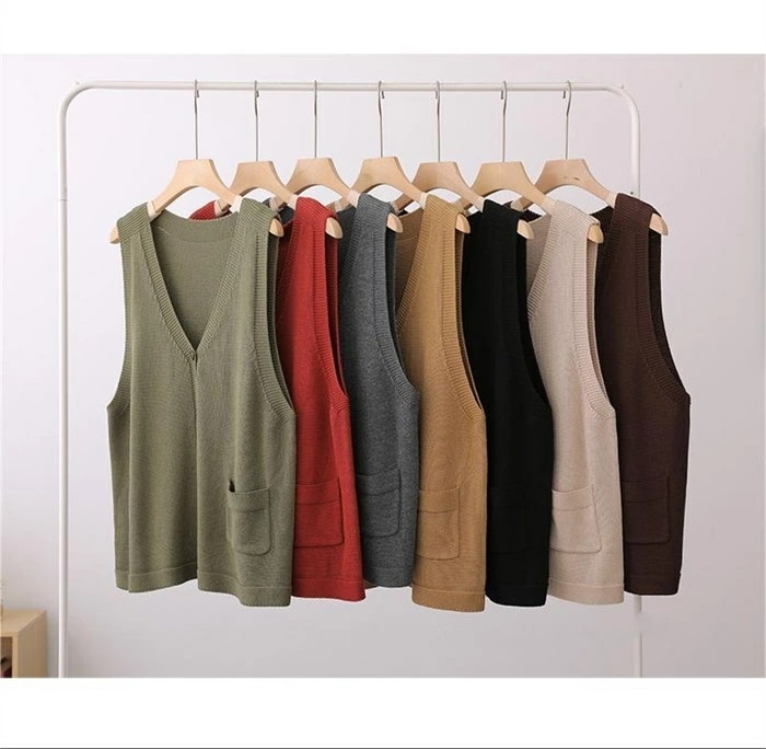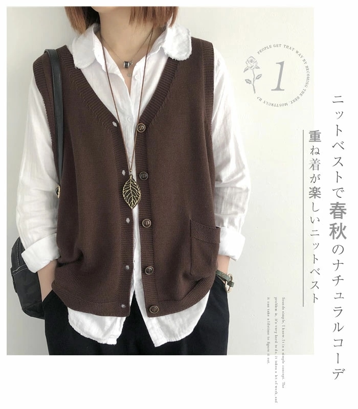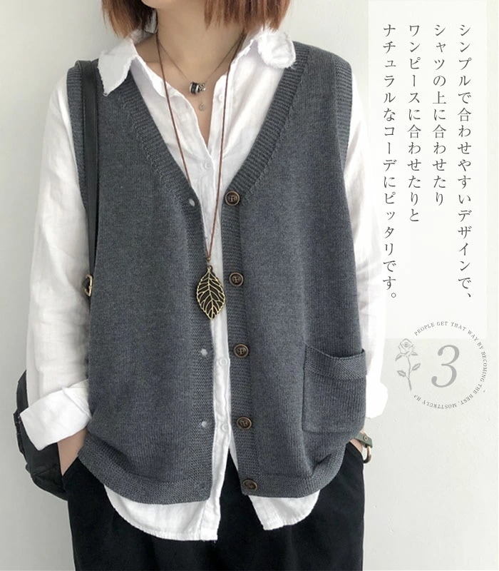 ニットベスト レディース Vネック ベスト 春 秋 前開き ベスト トップス カーディンガン ニット ノースリーブ セーター 普段着 レイヤード 重ね着 ゆったり 大きいサイズ 体型カバー カジュア