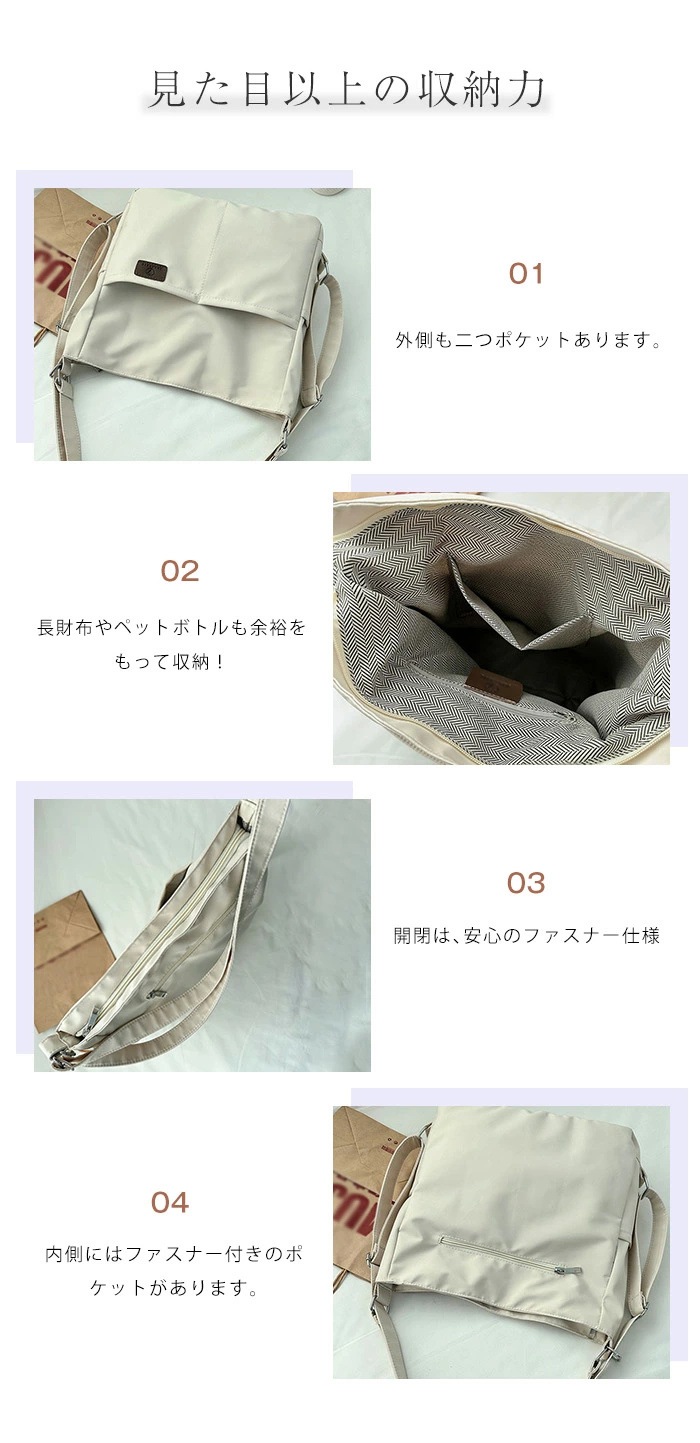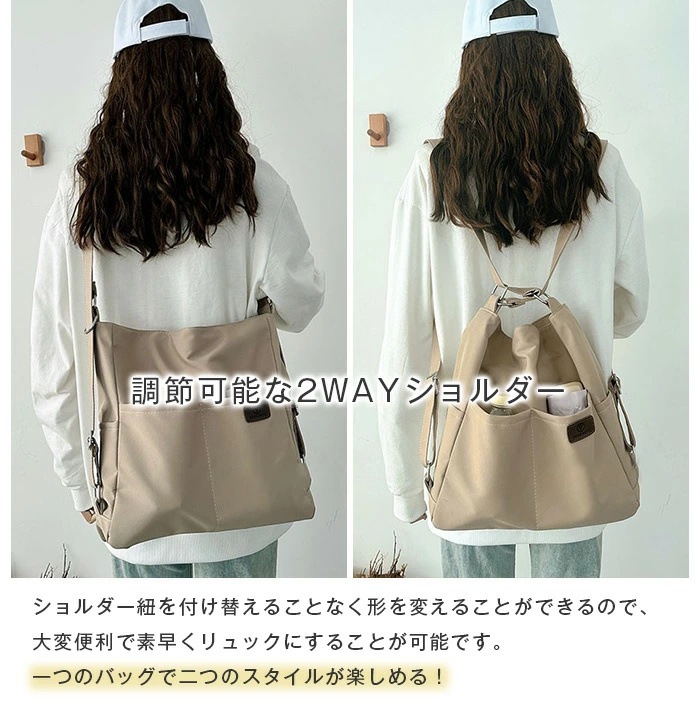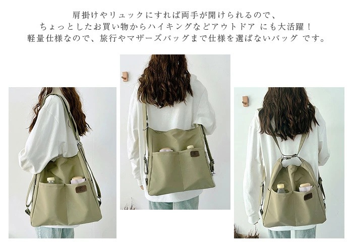 ショルダーバッグ レディース 斜めがけバッグ 通勤 バッグ 軽量 リュック 3way 斜めがけ 大人 ナイロン 大容量 A4 大きめ きれいめ 2way ショルダー リュックサック ボディバッグ トー