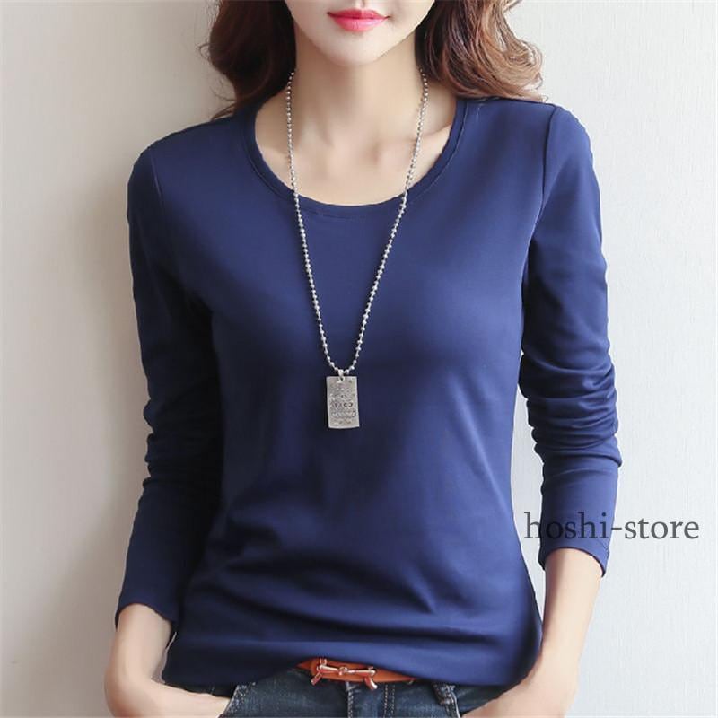 tシャツ 長袖tシャツ レディース トップス 長袖 カットソー ブラウス 秋 春 夏 着痩せ カジュアル 体型カバー インナー クルーネック