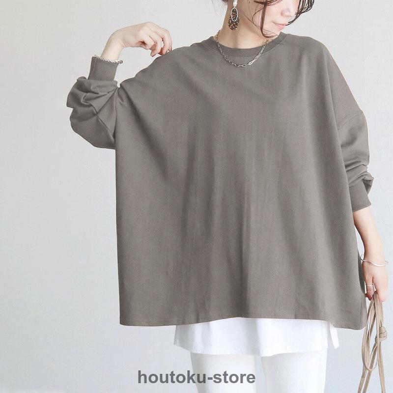 トレーナー レディース 長袖 カットソー スウェット 春秋 重ね着風 トップス 体型カバー カジュアル パーカー 通勤 着痩せ ゆったり プルオーバー