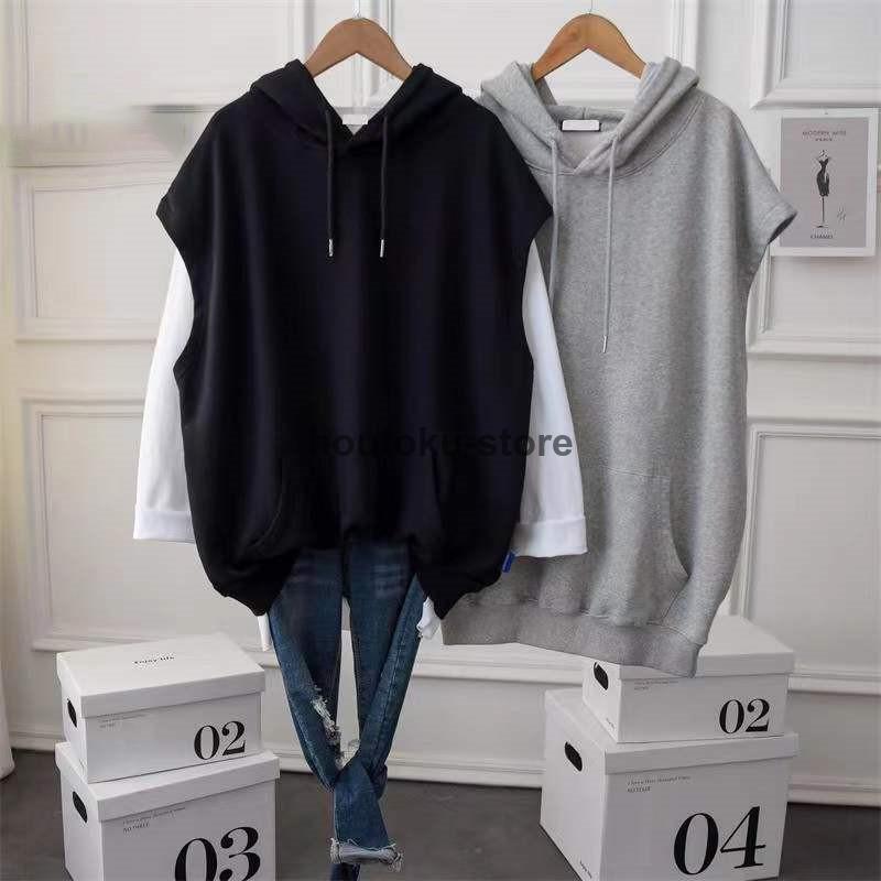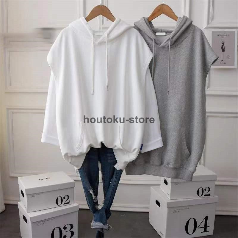 パーカー ベスト レディース トップス スウェット 通学 体型カバー 長袖 無地 羽織り フード付き ゆったり トレーナー プルオーバー カジュアル