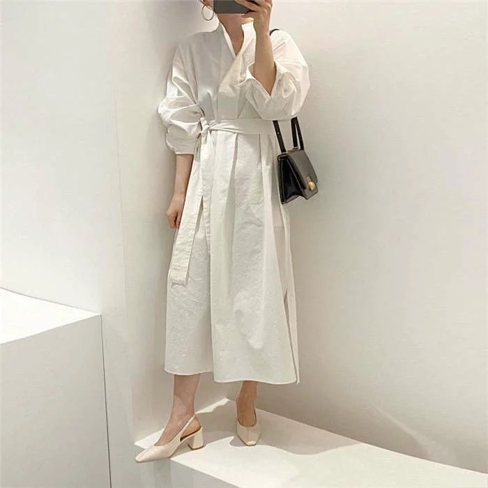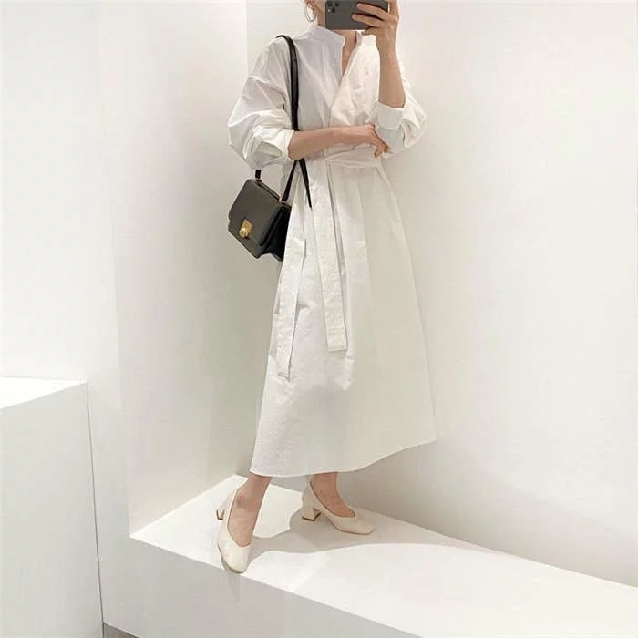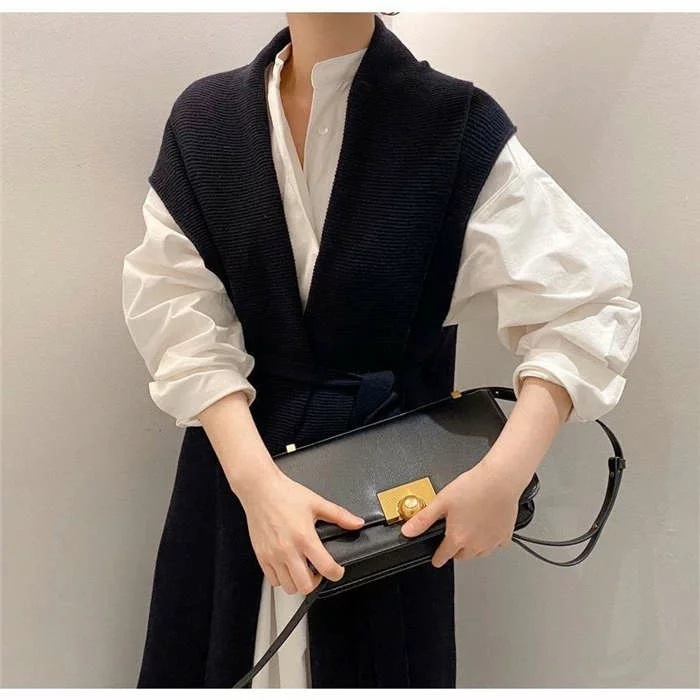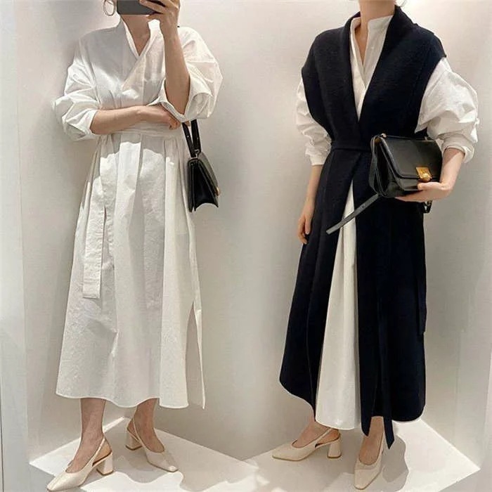 シャツワンピースニットベストレディース40春秋長袖ロング丈ニットベストセットアップ2点セットオシャレワンピース2点セットロングワンピースロングジレ着痩せ上品カジュアル着痩せ上品通勤カジュアル白黒ホワイ
