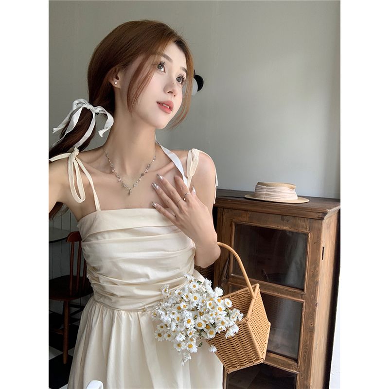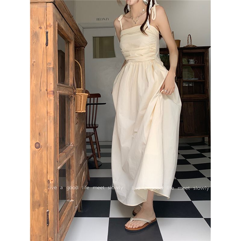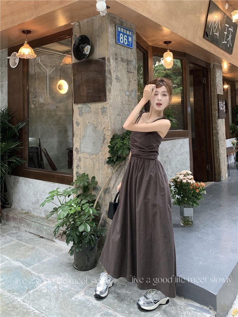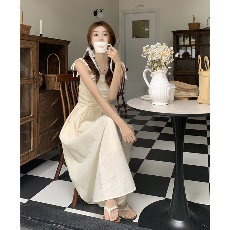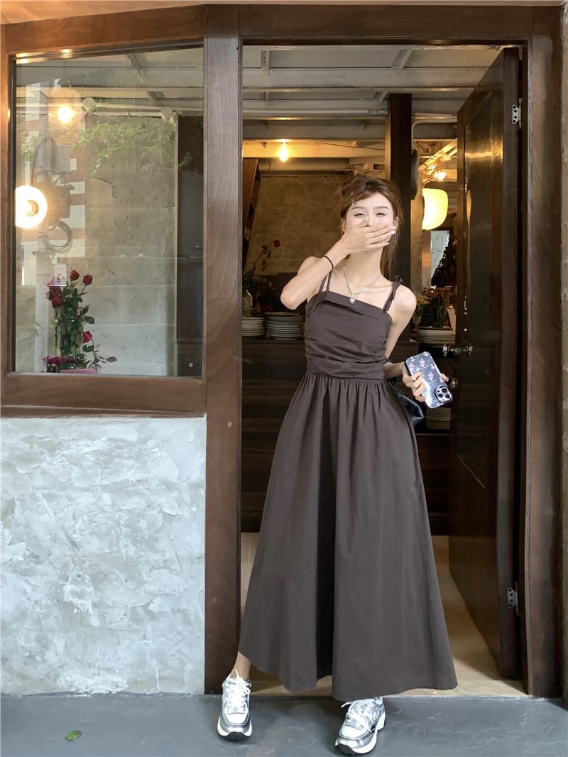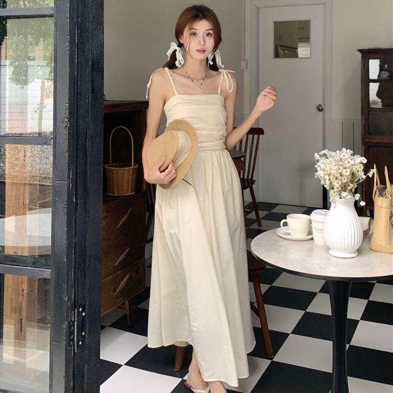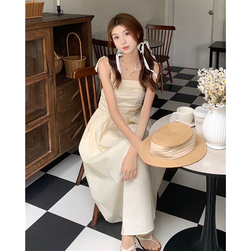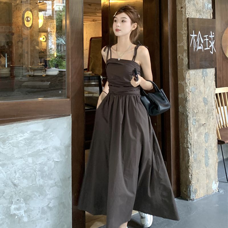 ヘビロテ キャミワンピース 韓国ファッション サスペンダードレス女性夏の気質ウエストAラインロングスカート キャミワンピ