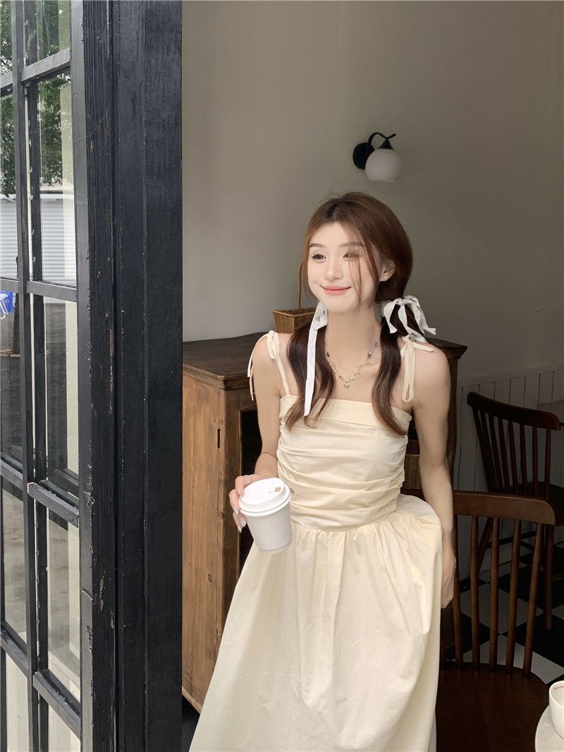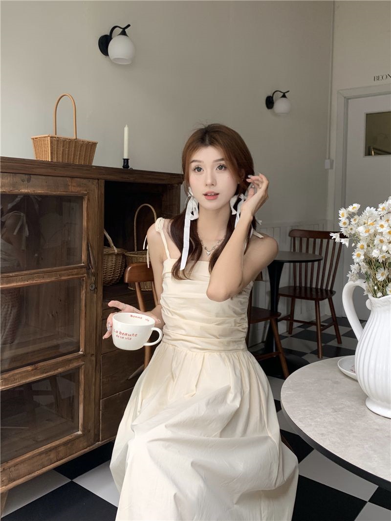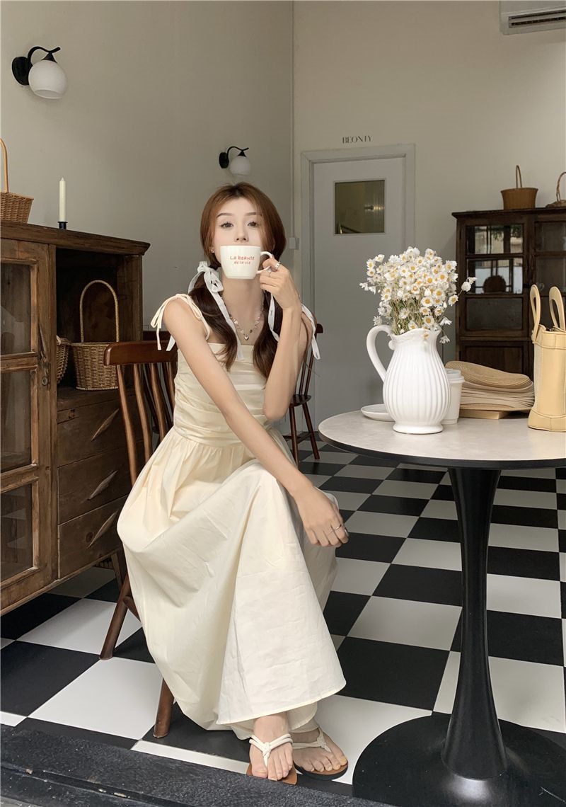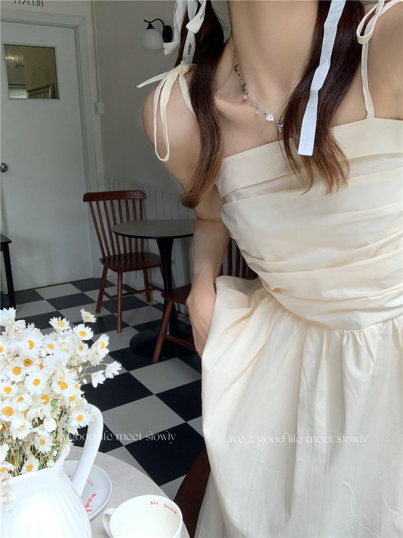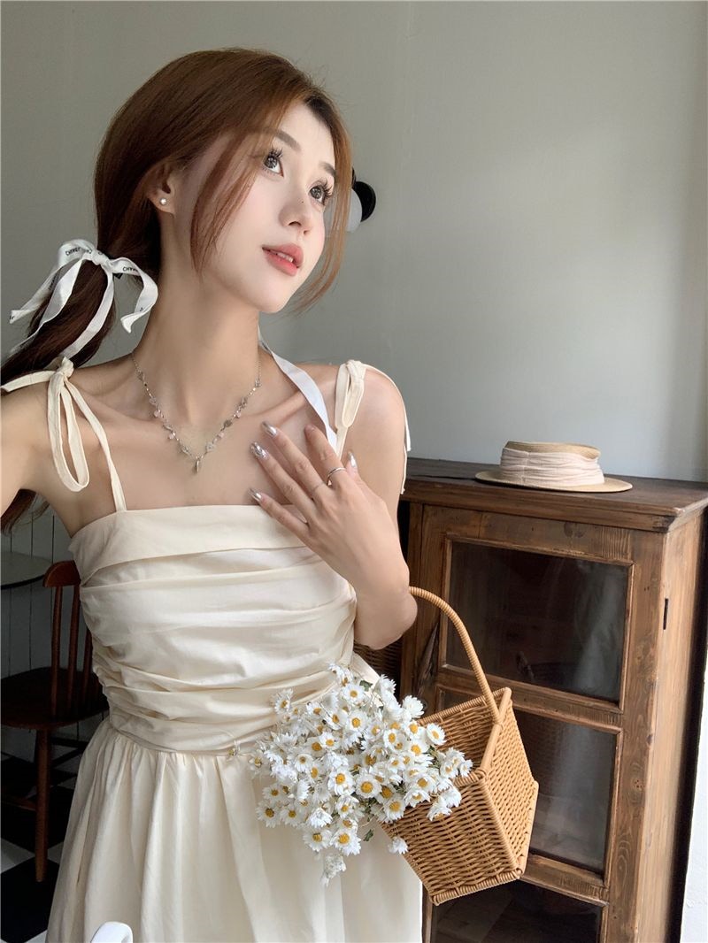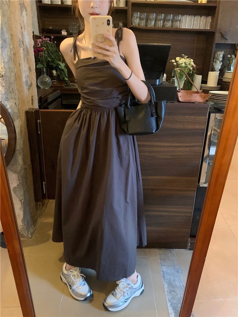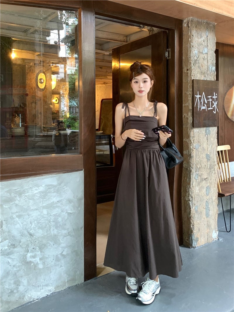 ヘビロテ キャミワンピース 韓国ファッション サスペンダードレス女性夏の気質ウエストAラインロングスカート キャミワンピ