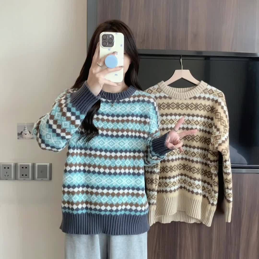 厚手 ニット服 セーター 女性 冬アウター ルーズ 大サイズ カシミヤタッチ 厚手シャツ 秋冬 韓国ファッション レディース ファッション ベーシックニット ロンT 長袖 セーター着