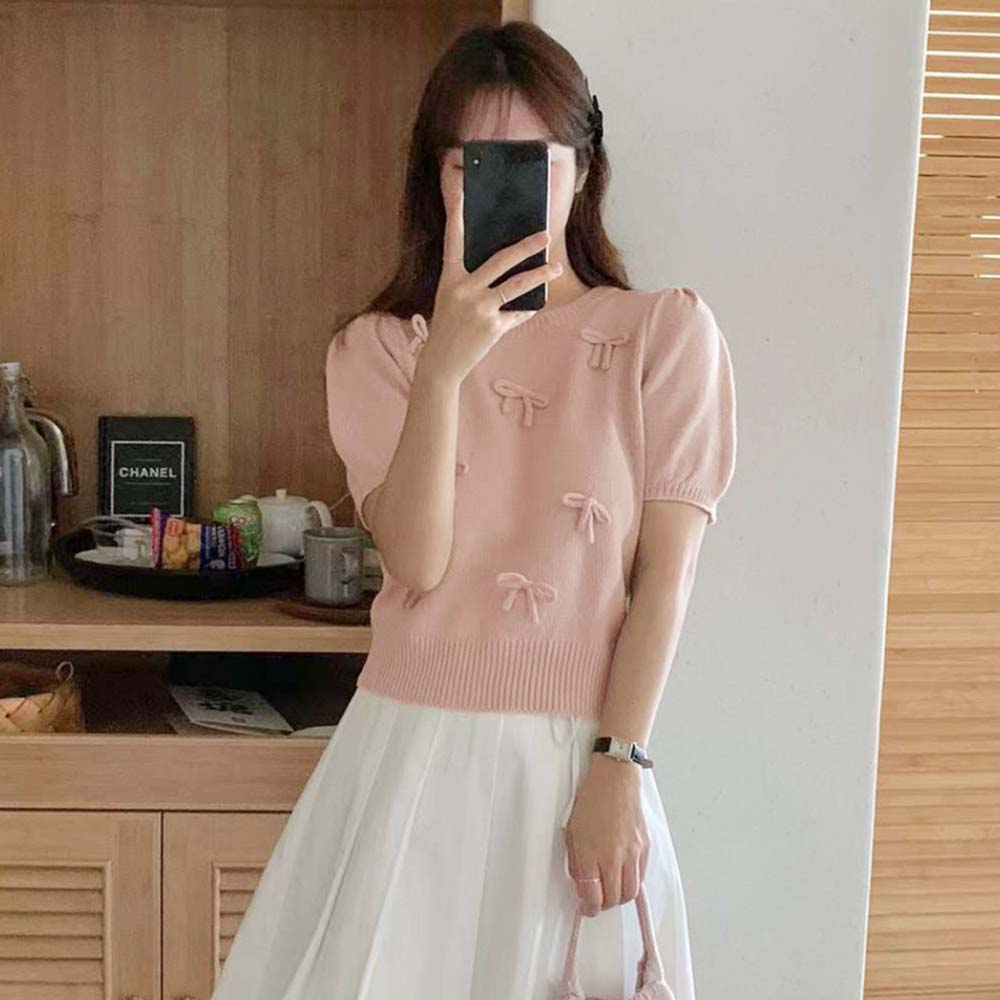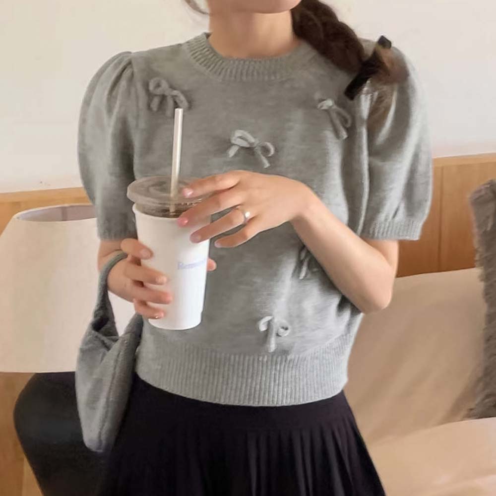 シアースリーブ ドッキングシャツ ボウタイシャツブラウス