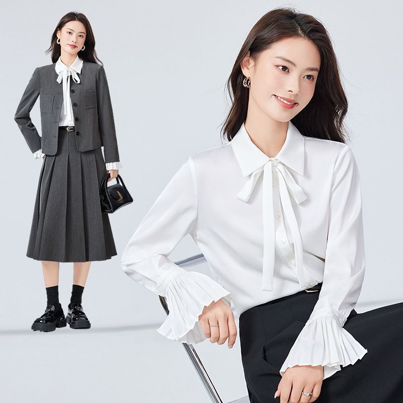 シアースリーブ ドッキングシャツ ボウタイシャツブラウス
