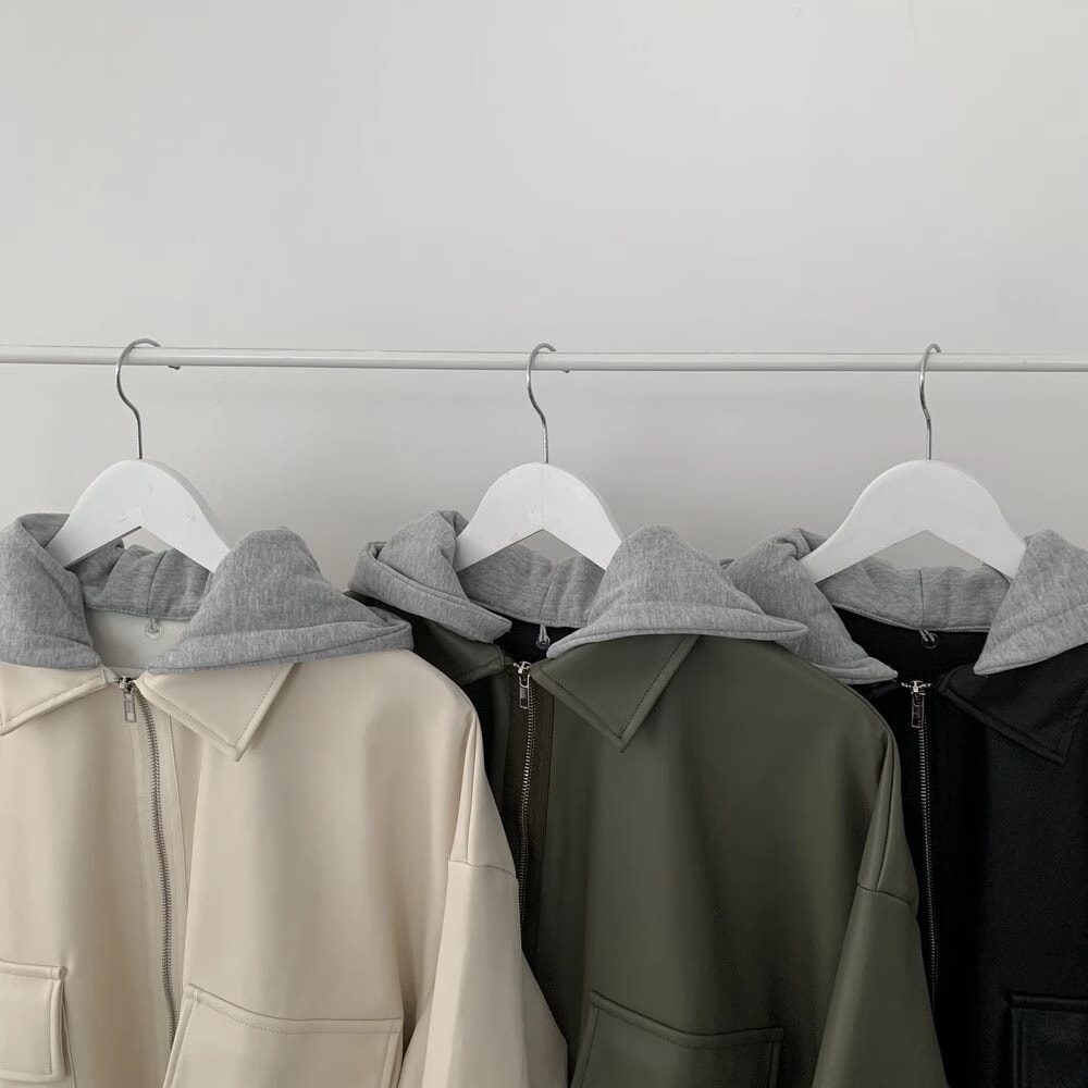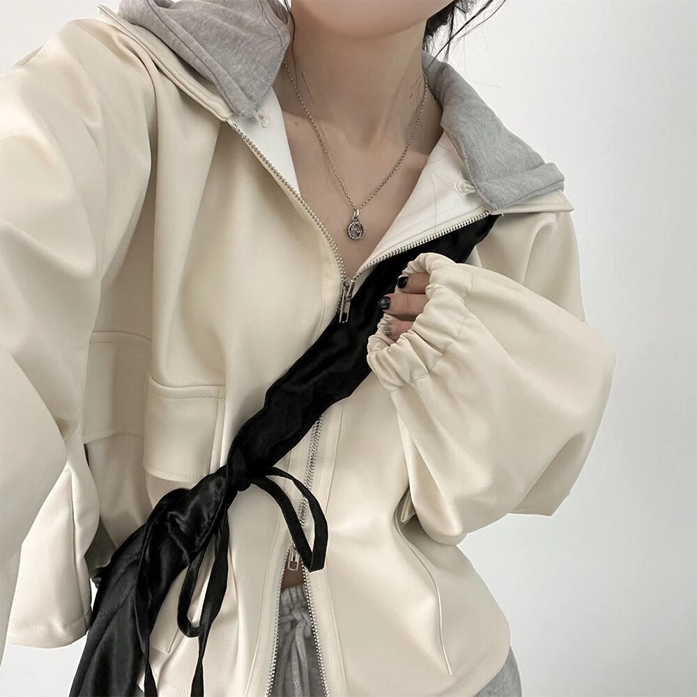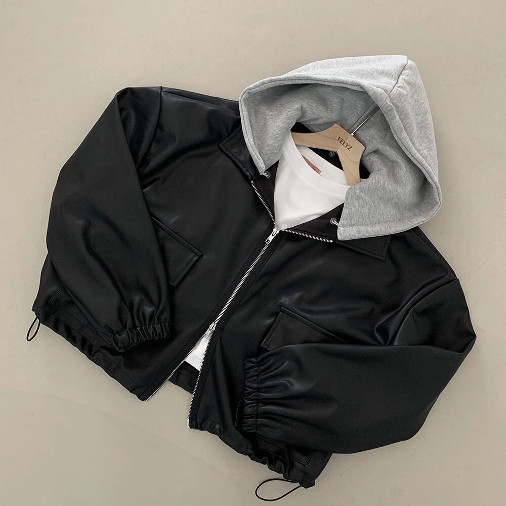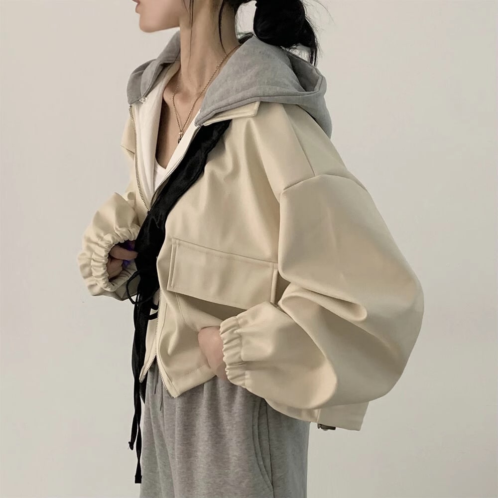 ライダースジャケット秋アウターフード付きショートpu レザージャケット 韓国ファッション 流行りトップス 革ジャンレディース クライダースジャケットコート 秋ジャケット