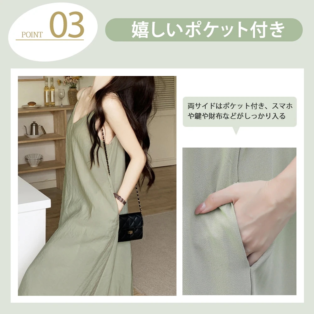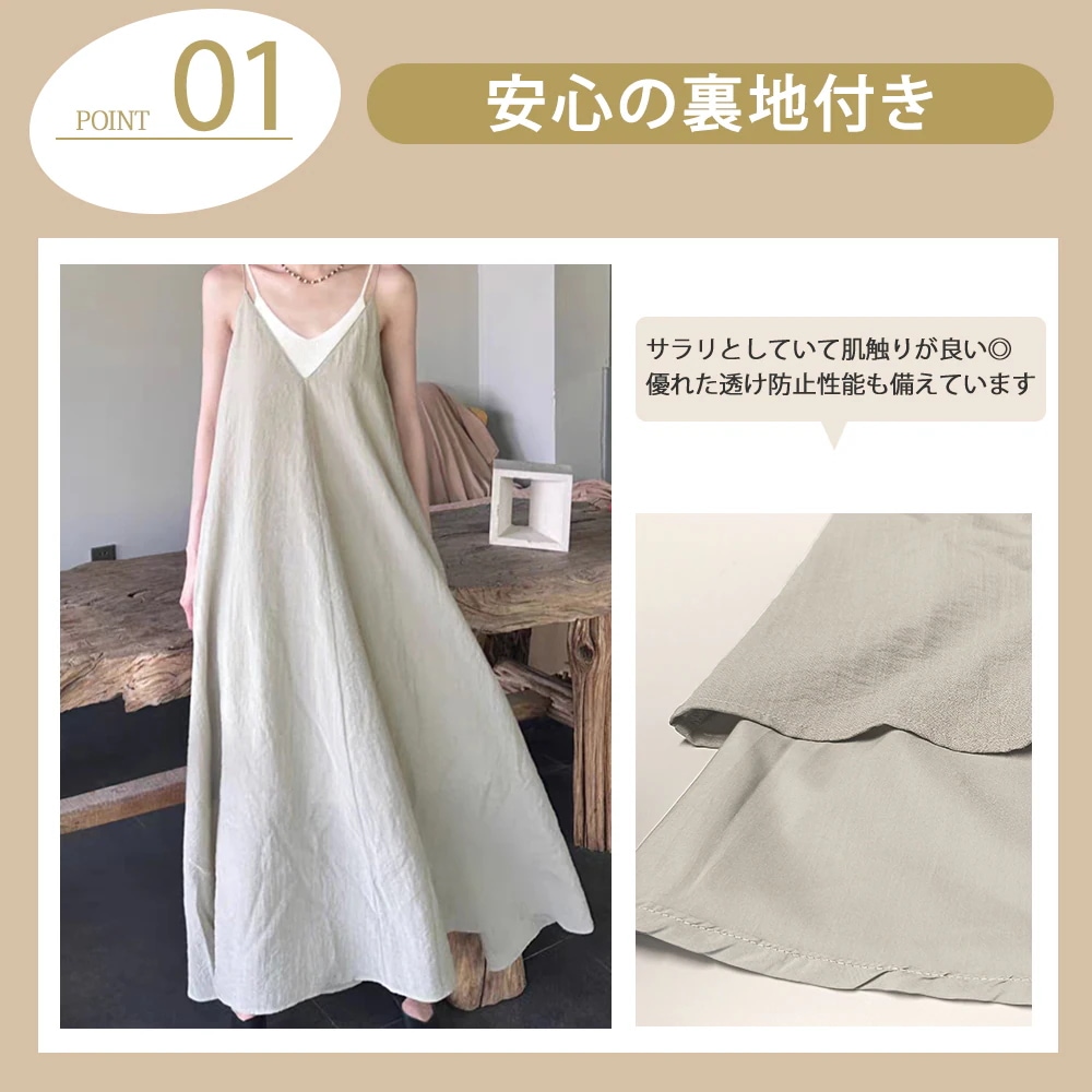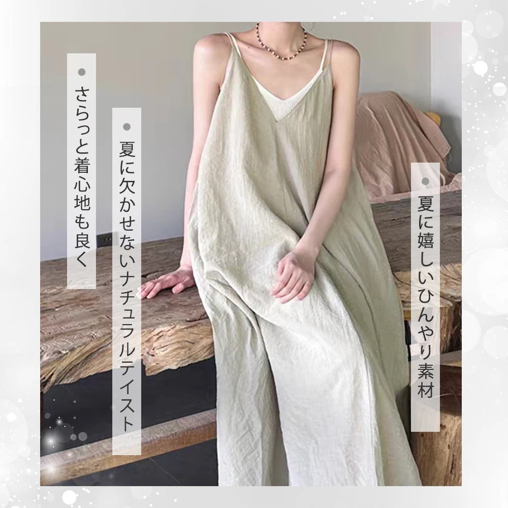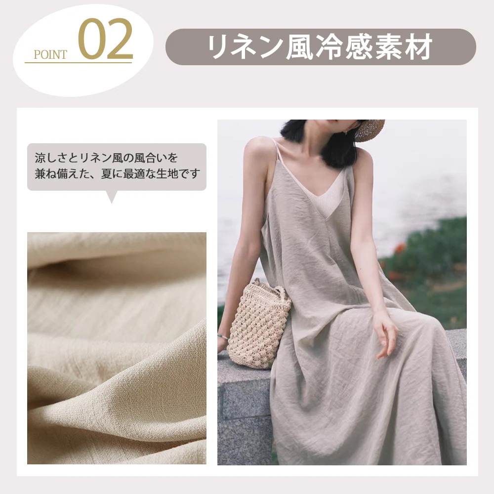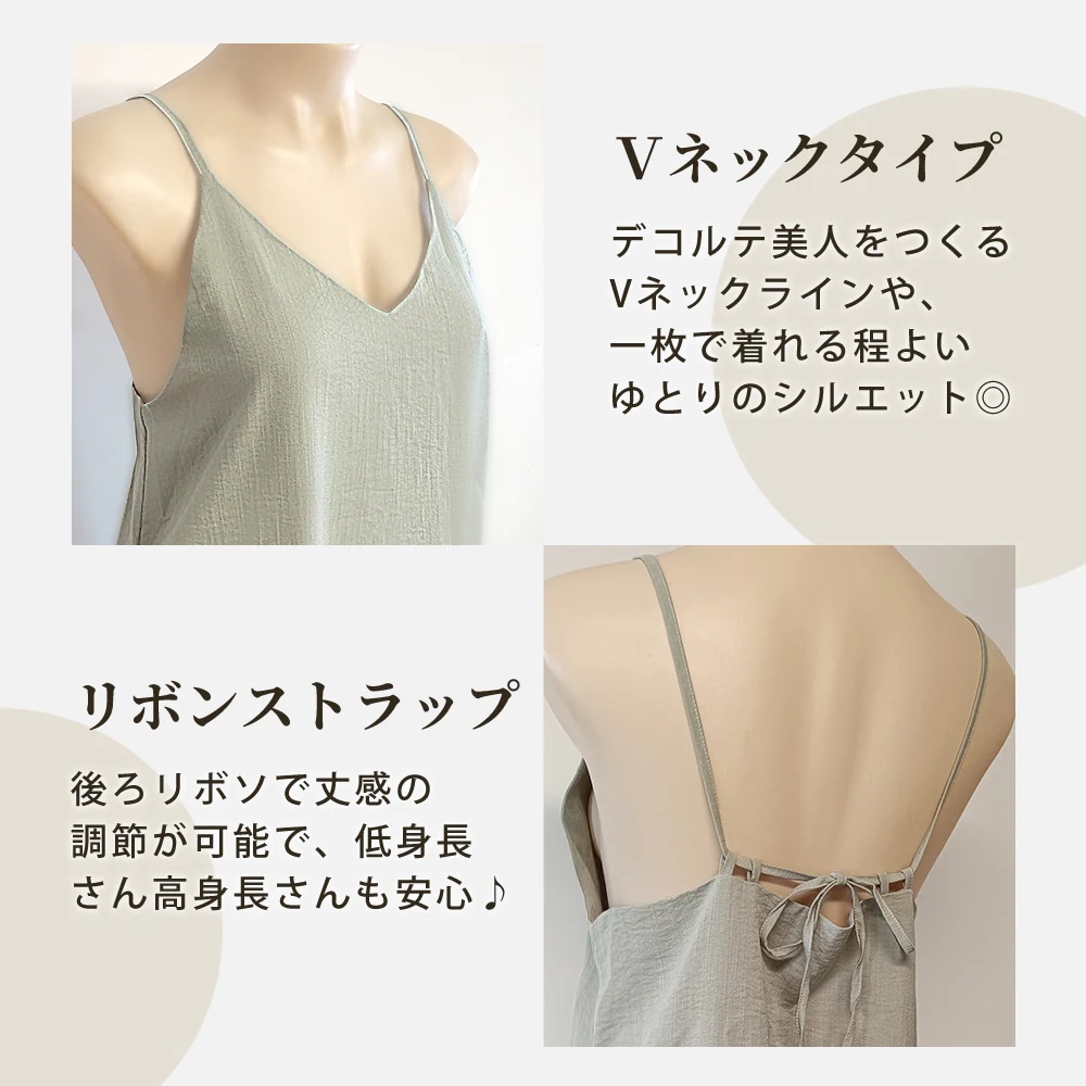 雑誌掲載 キャミワンピース リネン Vネック 低身長 高身長 バックリボンキャミワンピース キャミワンピ ワンピース レディース 選べる2タイプ 春 夏 接触冷感 ノースリーブ マタニティ 妊婦