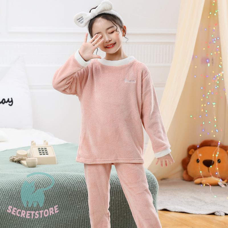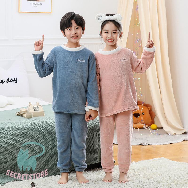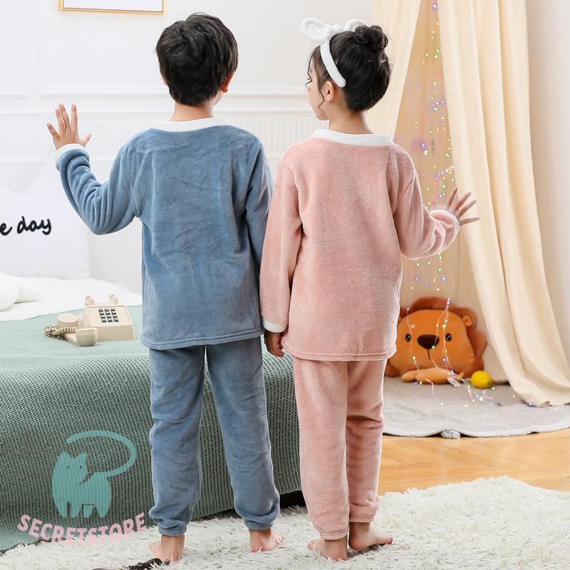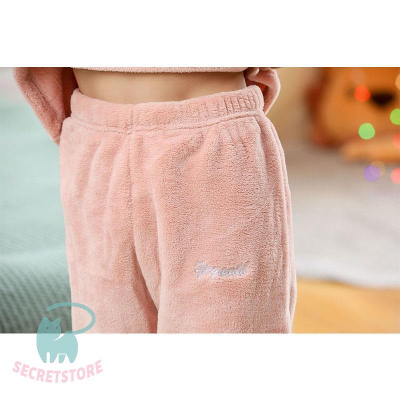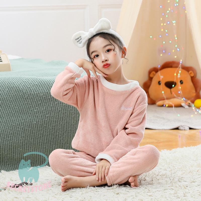 パジャマ キッズ 秋 冬 長袖 長ズボン上下セット 女の子 男の子 フランネル 可愛い ルームウエア ナイトウエア 丸襟 フリース 厚め ふんわり 柔らか 暖か 防寒