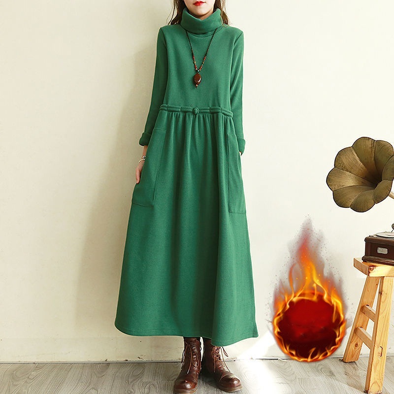 ワンピース マキシワンピース レディース ロングワンピース 秋冬 ハイネック ロングワンピ チュニック タートルネック マキシやけ 無地 ハイウエスト 微起毛 裏起毛ワンピース 防寒 保温 冬