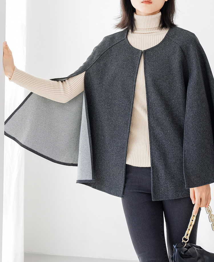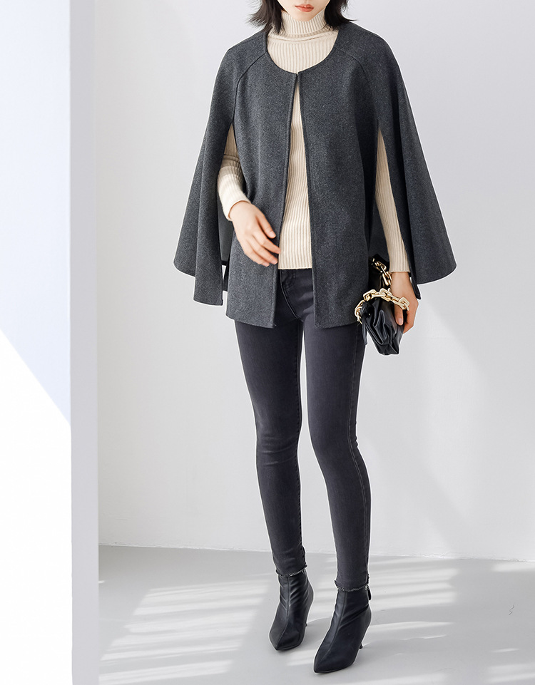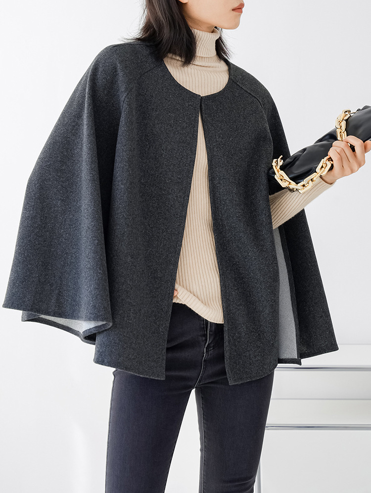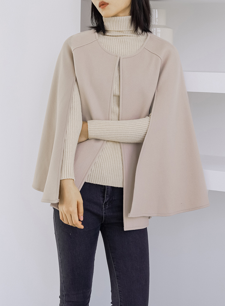 人気アウター 厚手 ラウンドネック 無地 ノースリーブ カーディガン ミディアム丈 ショール コート ツイード コート トレンチコート