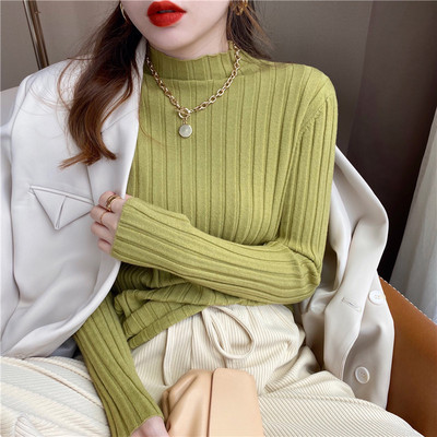 韓国の人気なリブニットカーディガン 秋冬レディース ファッションセーターハイネックニットトップス 無地長袖Tシャツカシミヤタッチ 通勤 大きいサイズ 暖かい ストレッチニット