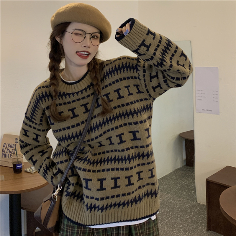 韓国人気商品 厚手 ニット服 セーター 女性 冬アウター ルーズ セーター 大サイズ カシミヤタッチ 無地 厚手シャツ 秋冬 韓国ファッション レディース ファッション ベーシックニット