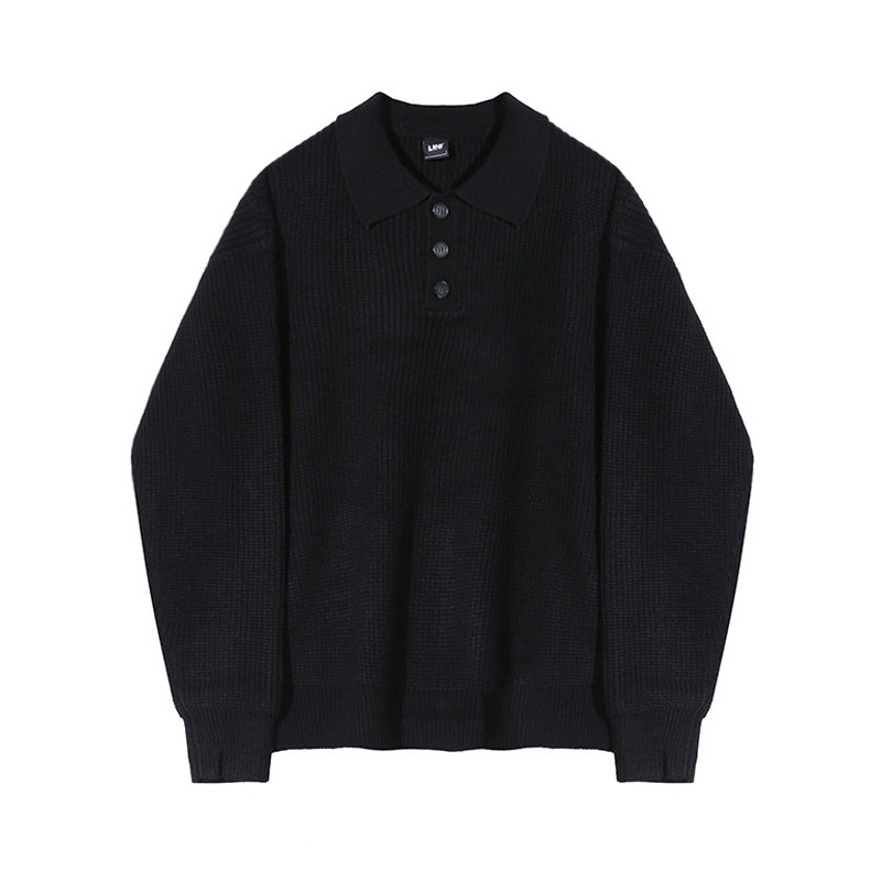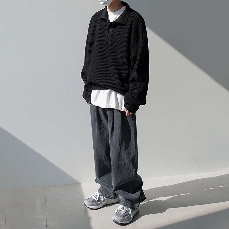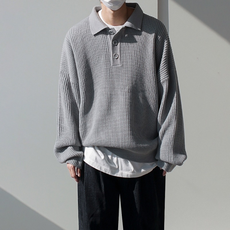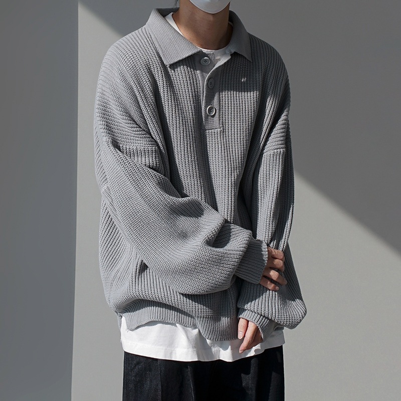 ソリッドカラーのプルオーバーオーバーサイズジャンパーの緩いトレンドのニットポロシャツメンズ秋と冬の韓国語バージョン ニット セーター