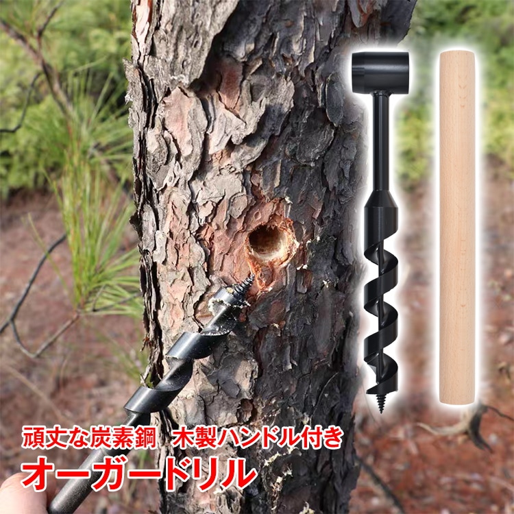 ウッドオーガードリル ハンドツール ブッシュクラフト ドリルビット ドリル径25mm 高精度ドリル刃 炭素鋼製 耐久性 木製ハンドル付き 穴掘り アウトドア ハイキ