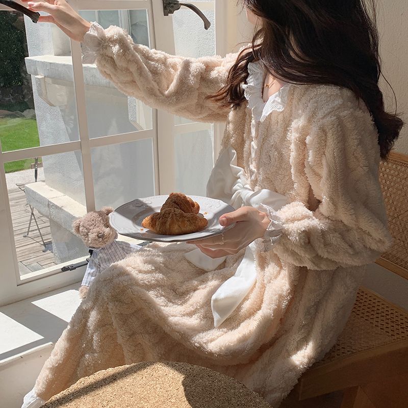 ひんやりボトムス 裏起毛 厚手 コーラルフリース ロング ネグリジェ レディース 秋 2024 ホームウェア パジャマもこもこパジャマ 補正下着