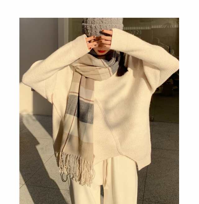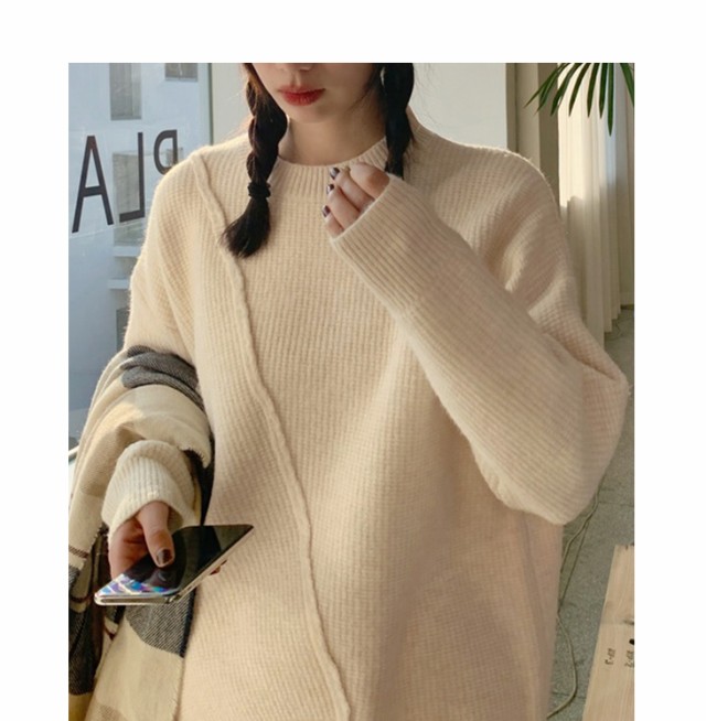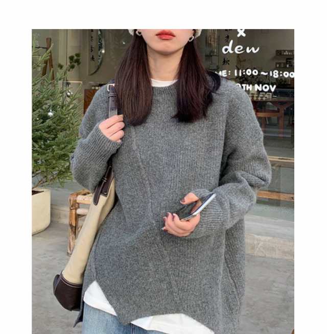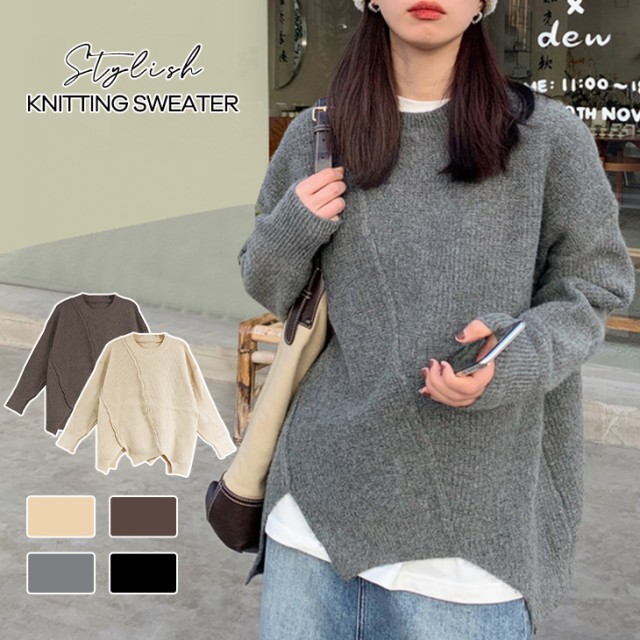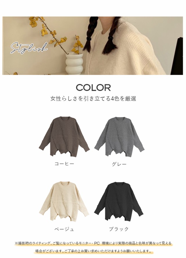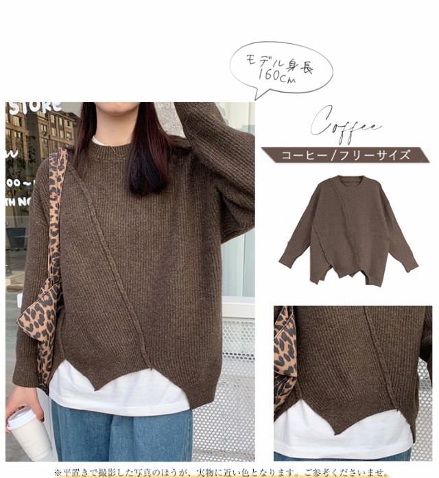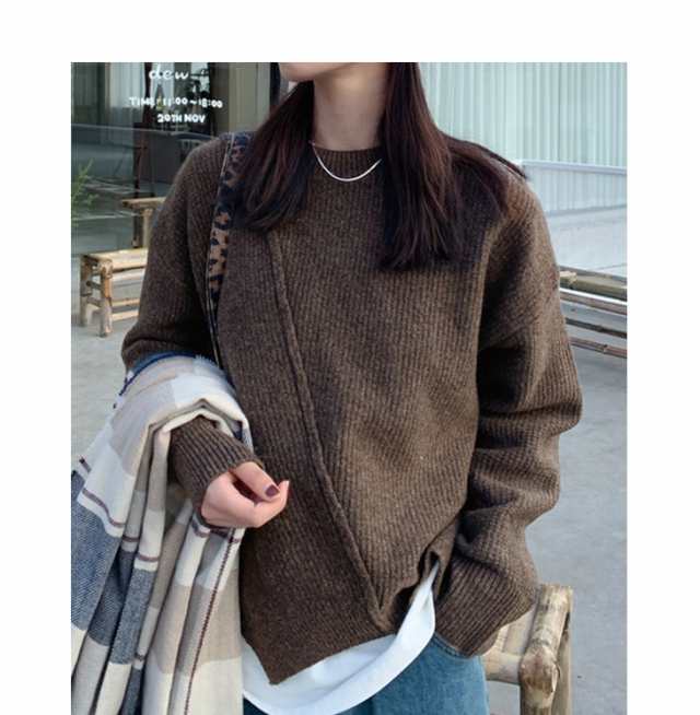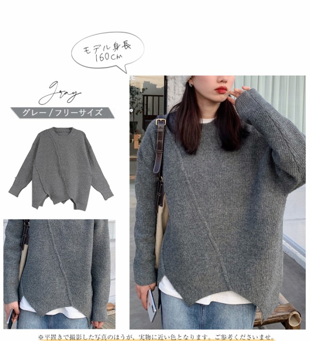 ニット セーター プルオーバー トップス レディース 長袖 秋冬 アシメトリー リブニット 丸首 販売終了 ニット