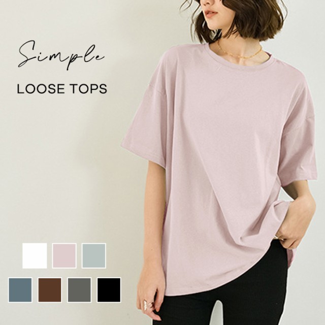 tシャツ トップス カットソー レディース ブラウス 半袖 無地 クルーネック ゆったり シンプル 体型カバー 20代 30代 40代 ワンピスター 在庫限定
