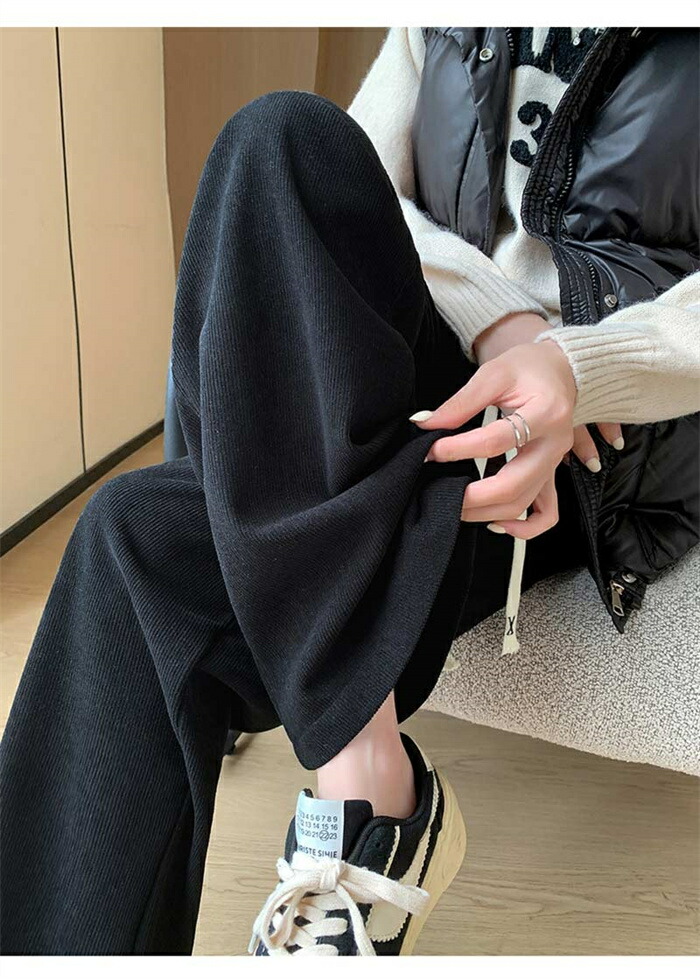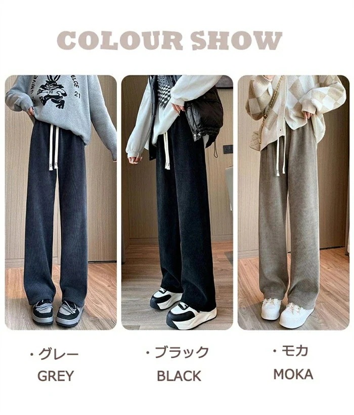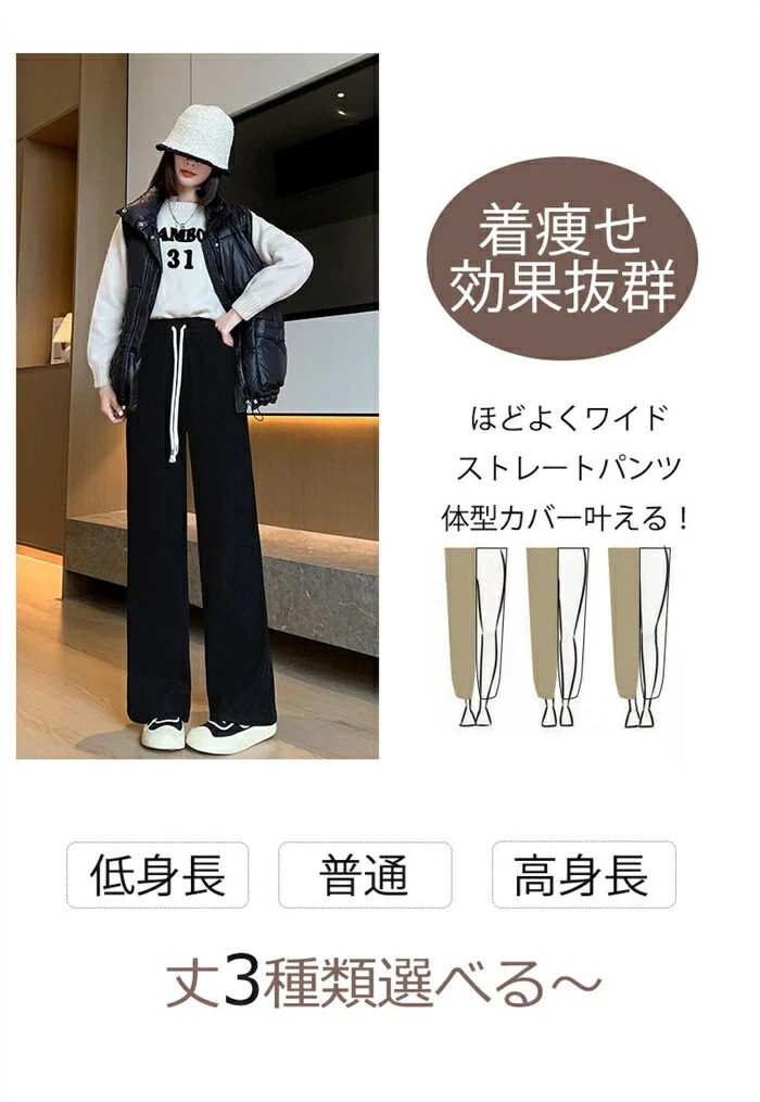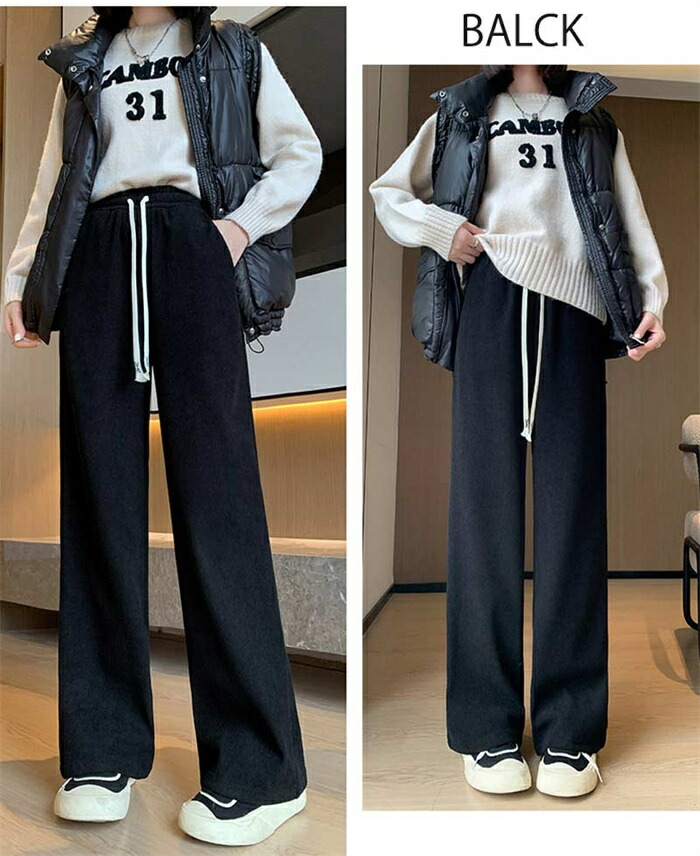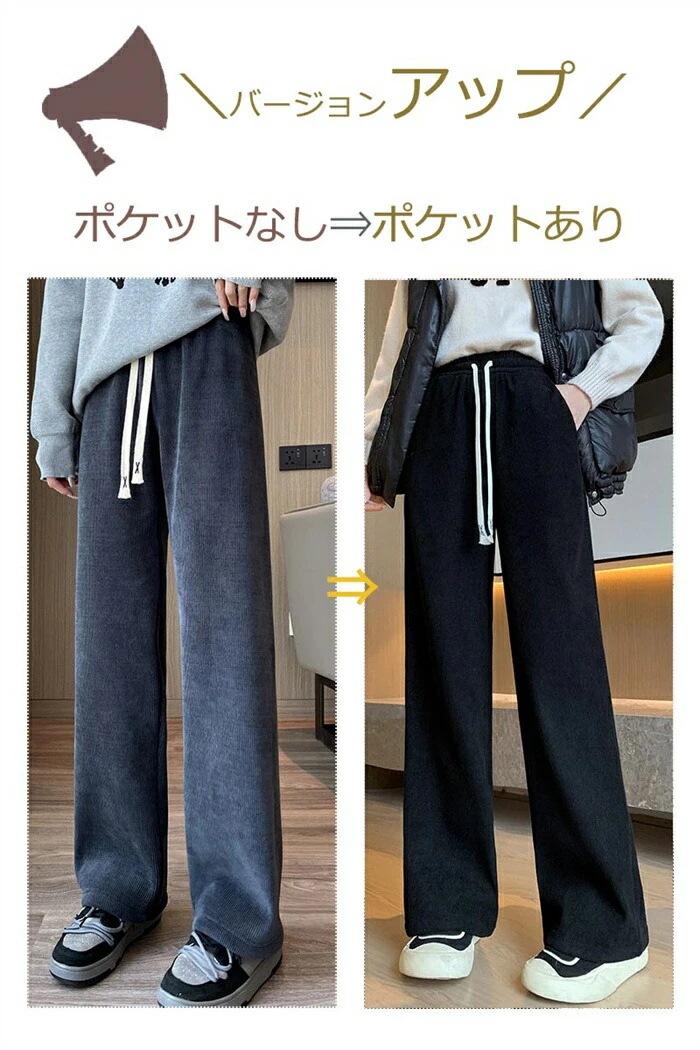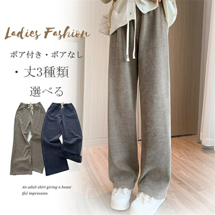 ワイドパンツ 秋冬 裏起毛 パンツ レディース ロングパンツ 微起毛 ガウチョパンツ 体型カバー パンツ ストレートパンツ ロング コーデュロイ 秋物 裏起毛 ウェストゴム ポケット付き 短め丈 普通