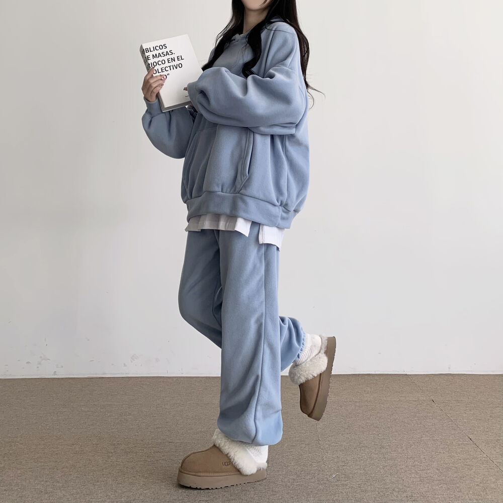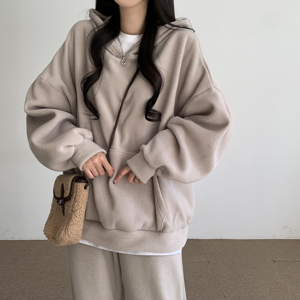 新作 シンプル スウエット 裏起毛 厚手 セットアップ レディース レディースファッション パーカー トップス ワイドパンツ 二点セット 大きめサイズ