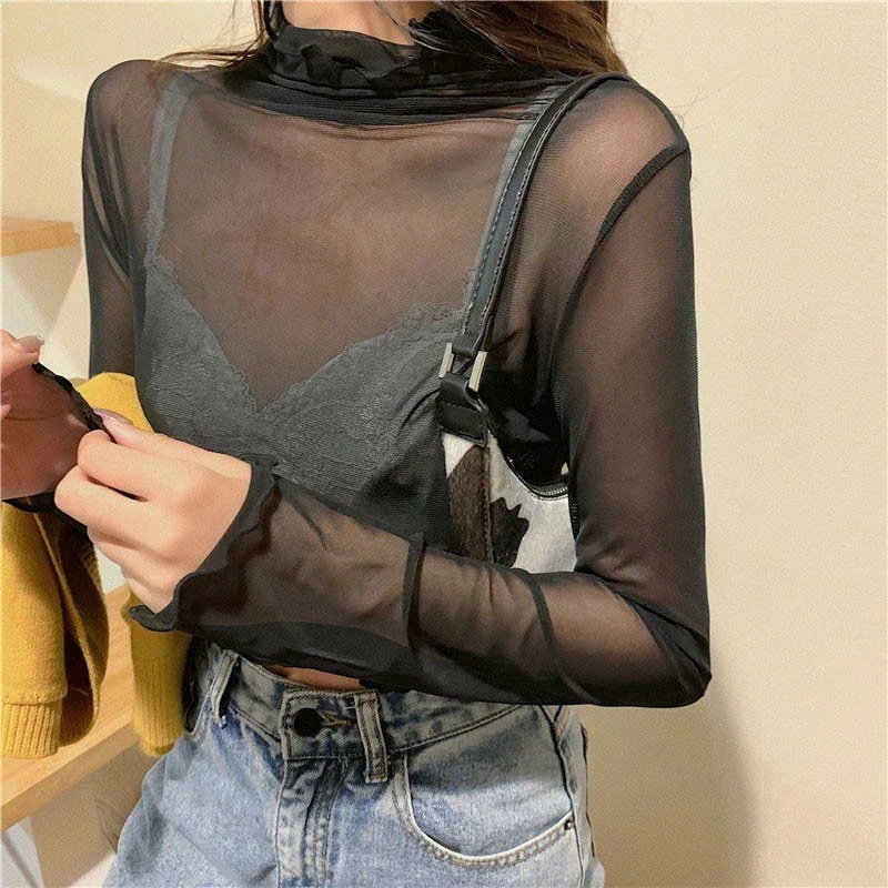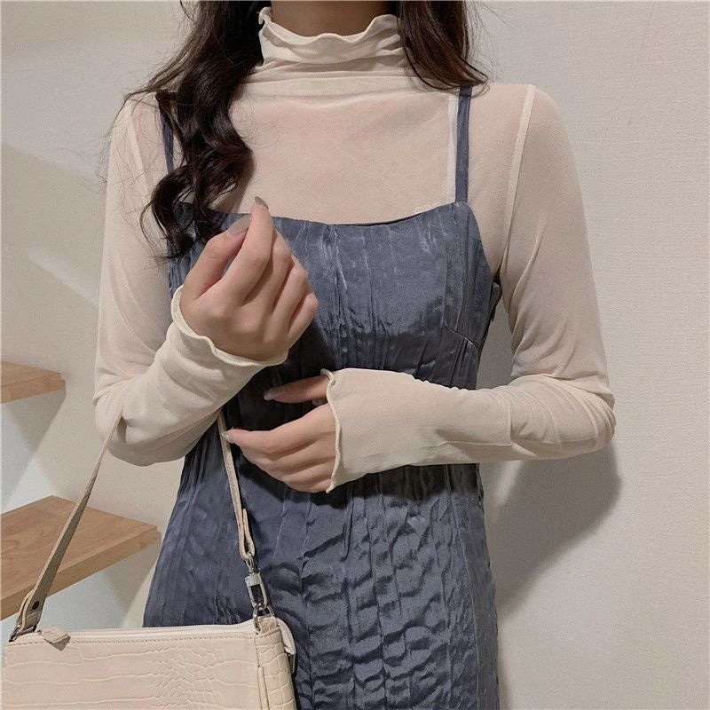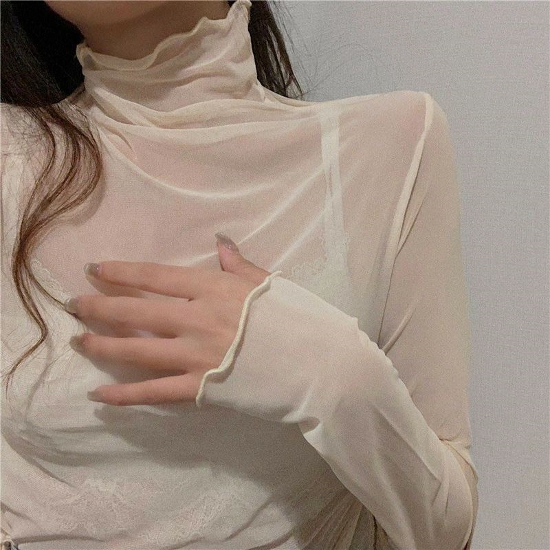 裏起毛 カットソー レディース 重ね着 ニットセーター シースルー カットソー インナー 総レース 透け感 セクシー ブラウス 長袖 薄手 トップス レイヤード 柔らかい