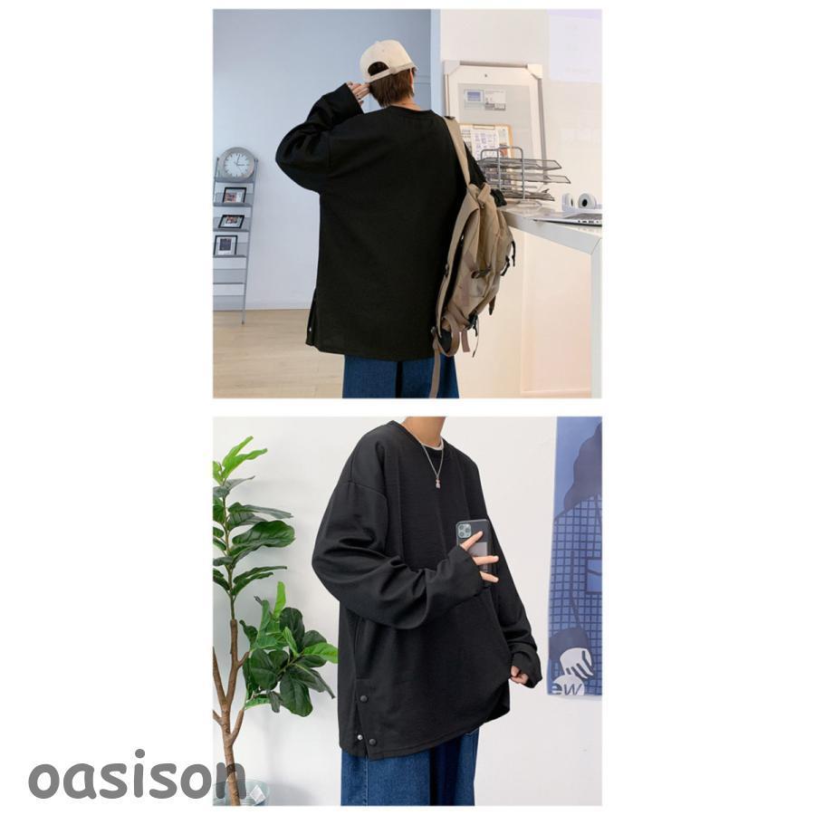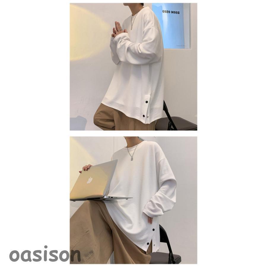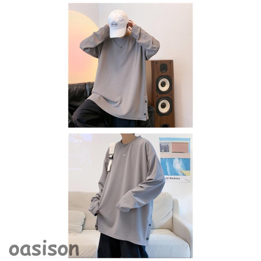 万能流行感 長袖tシャツ メンズ カットソー ティーシャツ 服 大きいサイズ 無地 軽い 柔らかい ビッグシルエット かっこいい シンプル パーカー トレーナー