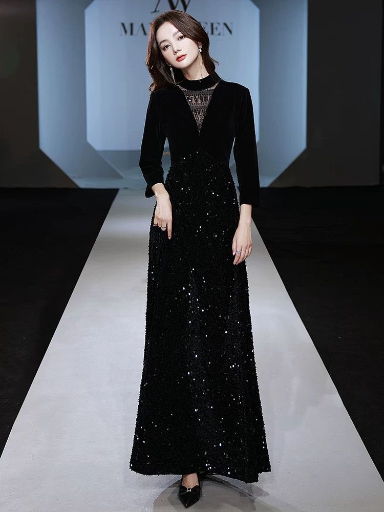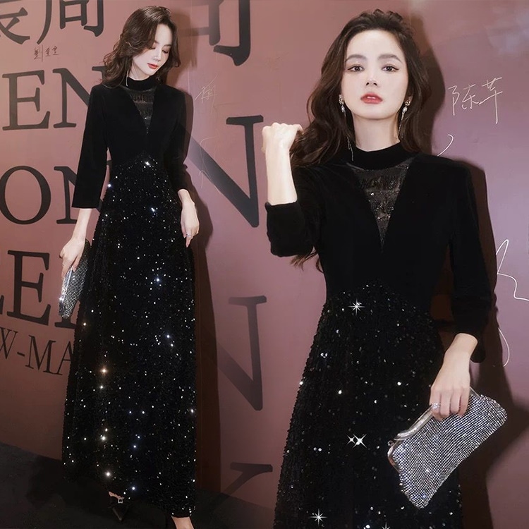 ベルベット ドレス 小柄 高級感 パーティードレス 黒 気質 イブニングドレス 演奏会 成人式 同窓会 発表会 フォーマル キャバドレス ワンピース OL 正式 礼装 チャイナドレス