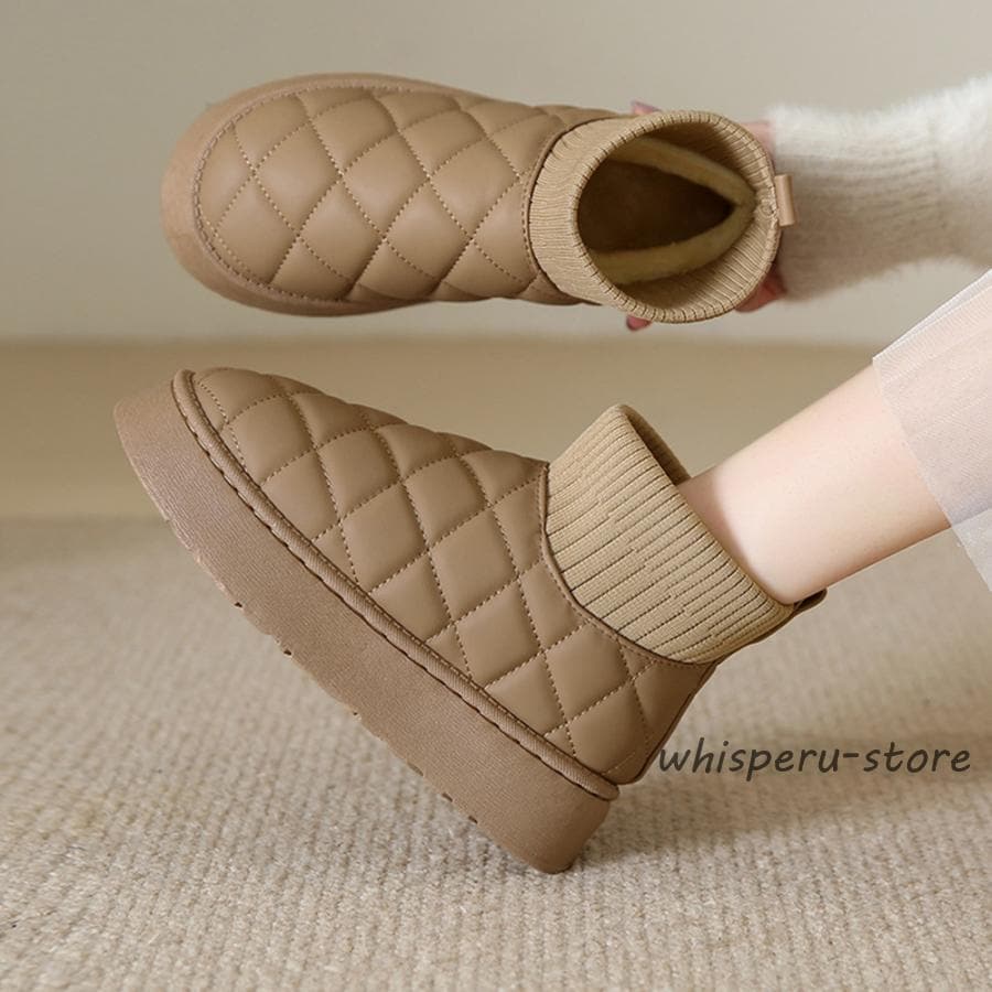 ムートンブーツ キルティング裏起毛ブーツ ショート ミドルブーツ