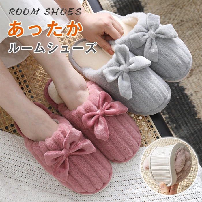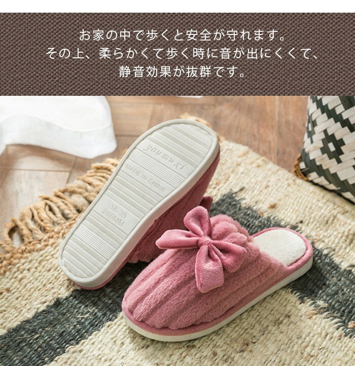 2点購入で600 OFF スリッパ あったか 冬用 ピンク もこもこ 秋冬柔らかいレディース メンズ フリース ルームシューズ リボン付き あったかフィットスリッパ 男 女 ふわふわ 室内履き 冷