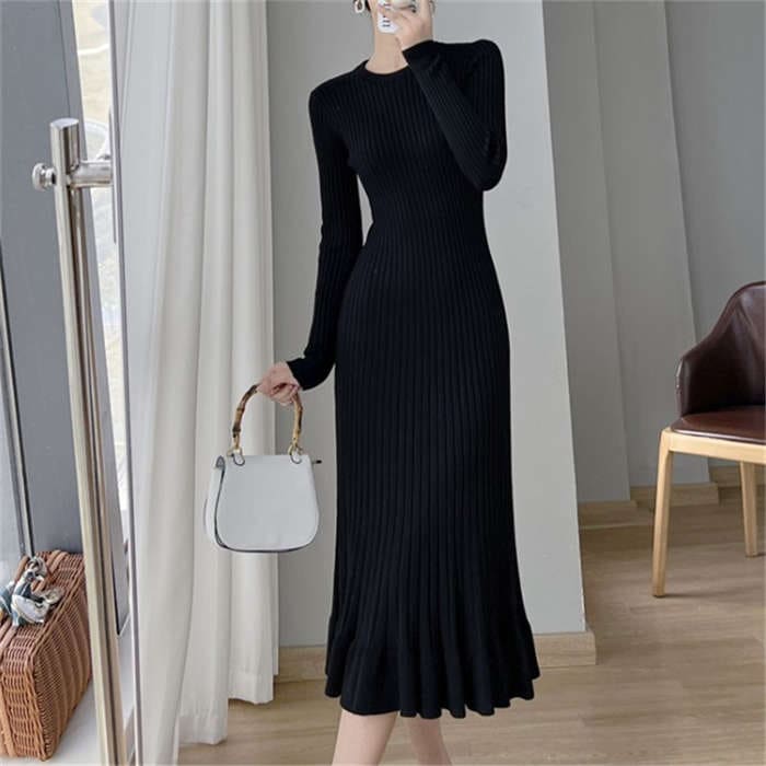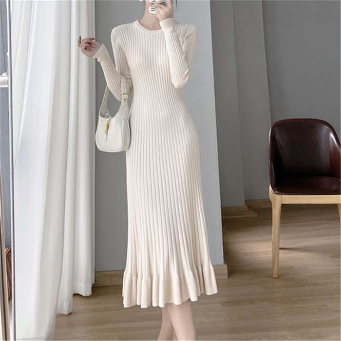 ニットワンピース レディース タイト ワンピース Aライン フレア裾 マーメイドシルエット ワンピース タイト タイトワンピ 長袖 無地 ニット 膝丈 通勤 オフィス 着瘦せ 秋 冬 タイトワンピース