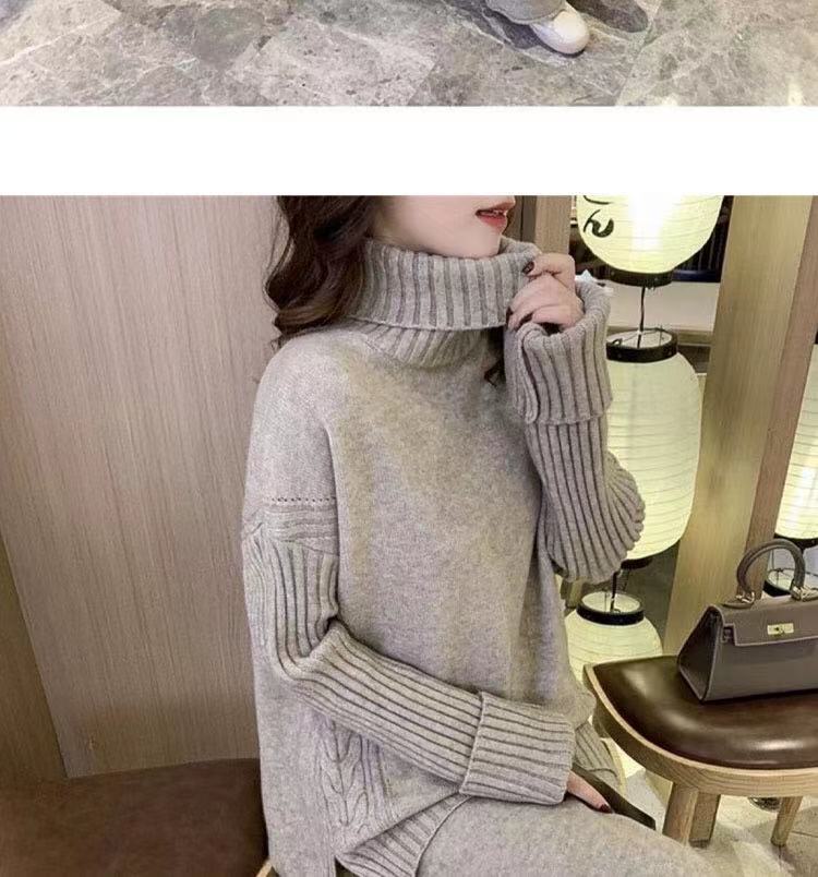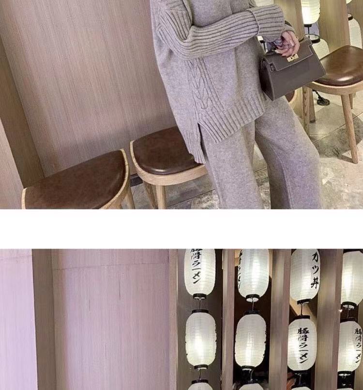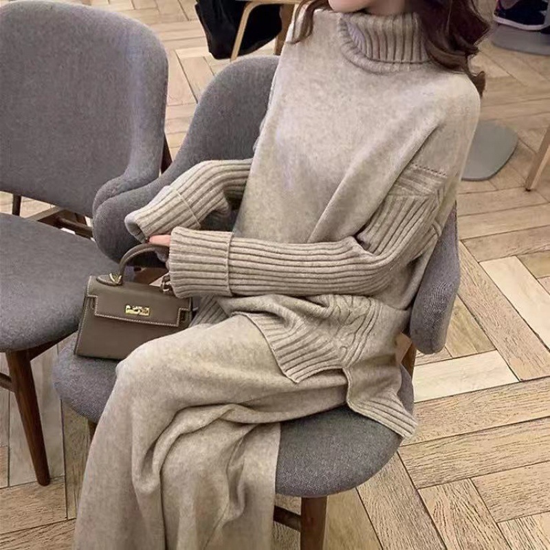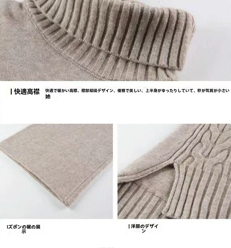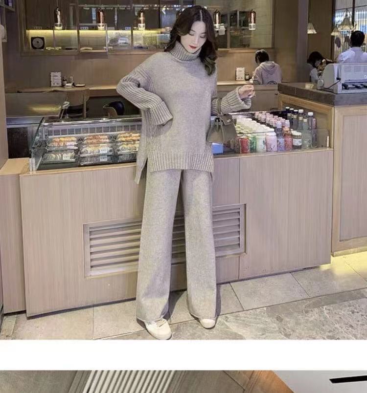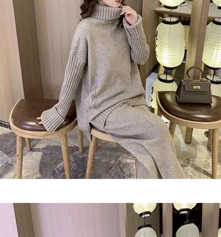 2024レディースニットセット秋冬新作 タートルネックセーター+ワイドパンツ ニット二点セット 怠惰な風 オシャレ 気質 上下レディースセット 通勤 長袖セーター ロングパンツ 二点セット