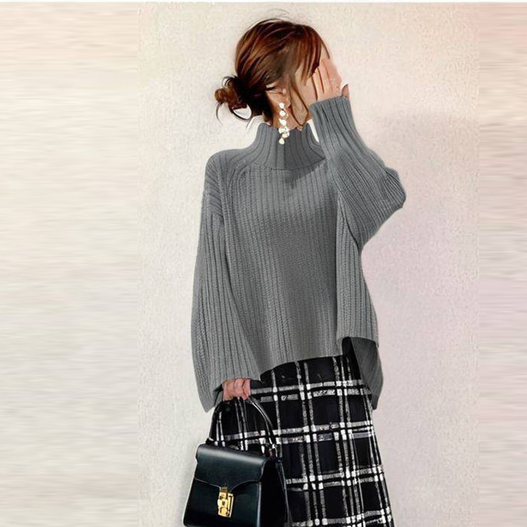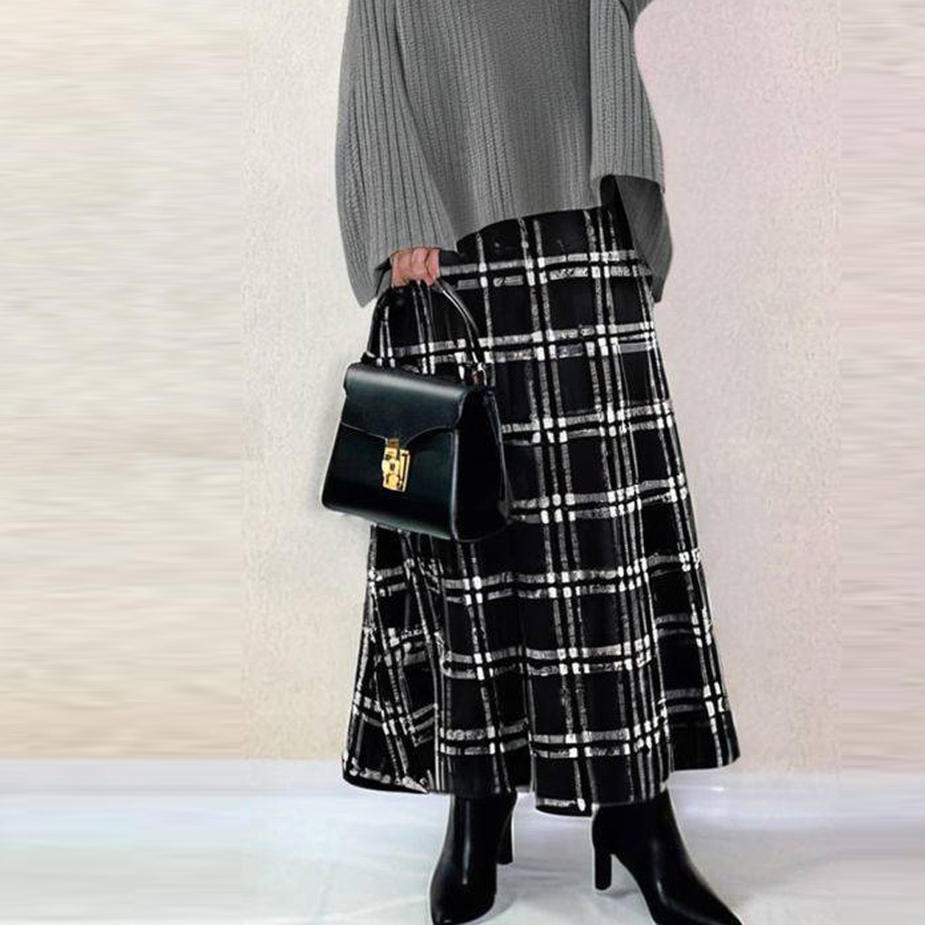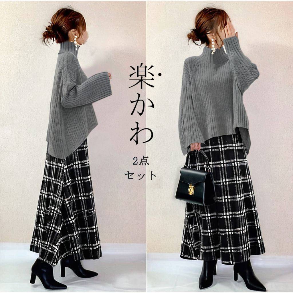 2点セット 上品 ハイネックゆったりグレーセーターチェック半身スカート 新作 大人 お洒落 気質 通勤OL その他 ワンピース ドレス