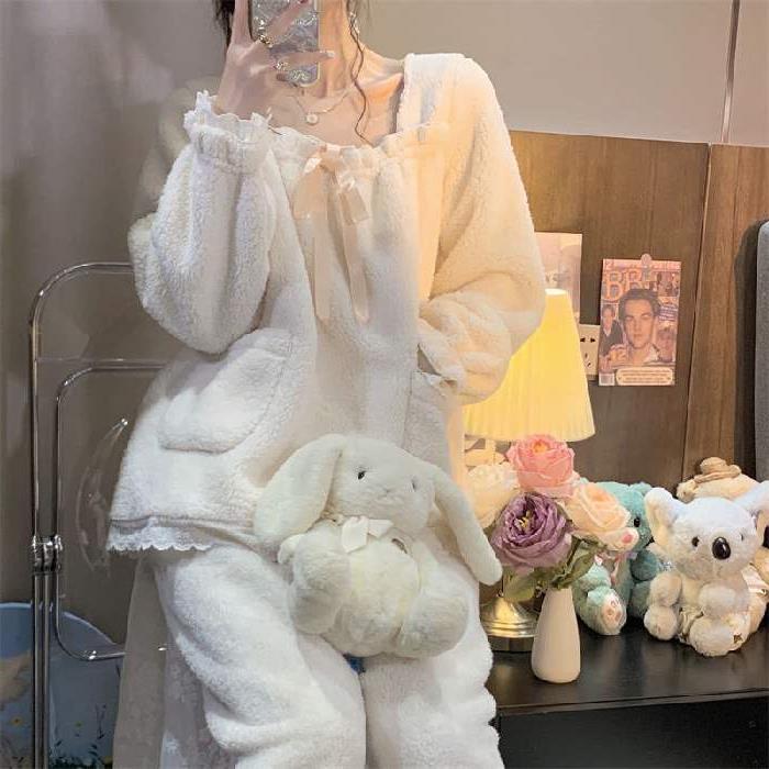 新作 秋 冬 日系 卡爱 ルームウェア ウォーム 防寒 ネグリジェ パジャマセット あったかルームウェア パジャマ