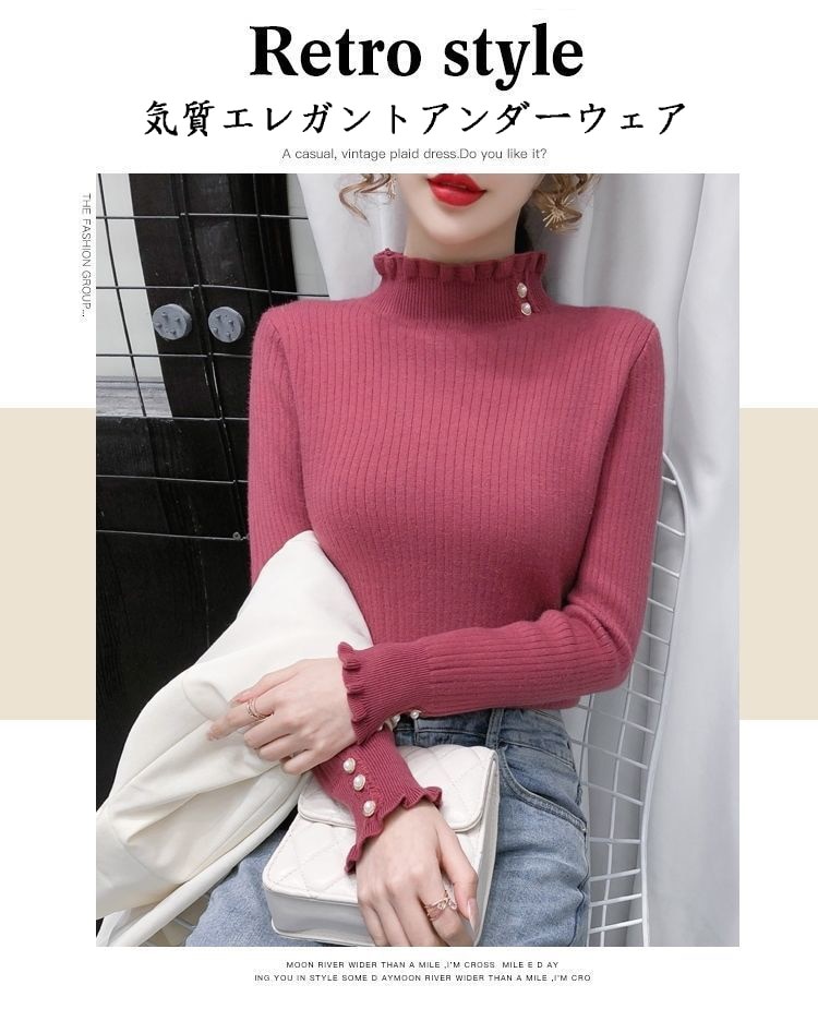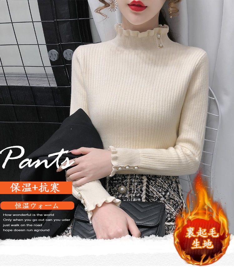 カシミヤタッチ一体型 秋冬 裏起毛季候 ウォーム ハイネックニットアンダーウェアベーシックニット 裏起毛フアッション 人気なリプニット ニット
