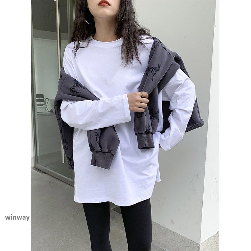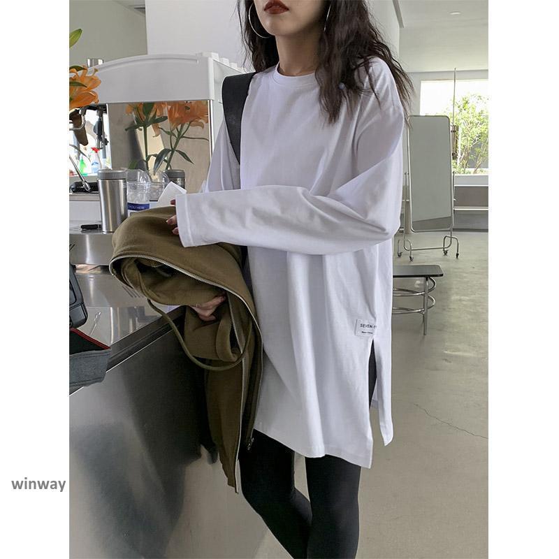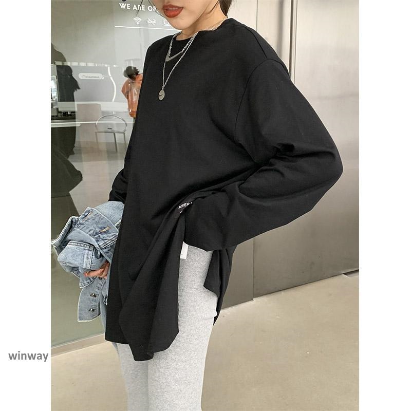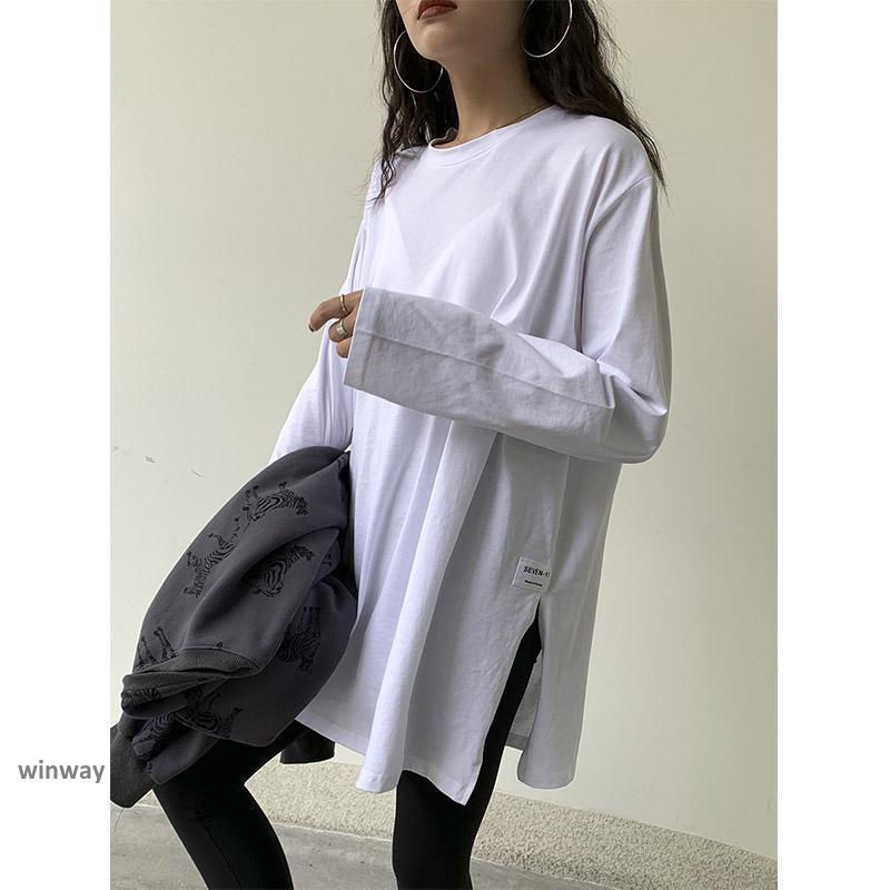 カットソー レディース シャツ ロングシャツ スウェット 長袖 韓国 大きい ルームウェア トレーナー 部屋着 体型カバー Tシャツ カットソー