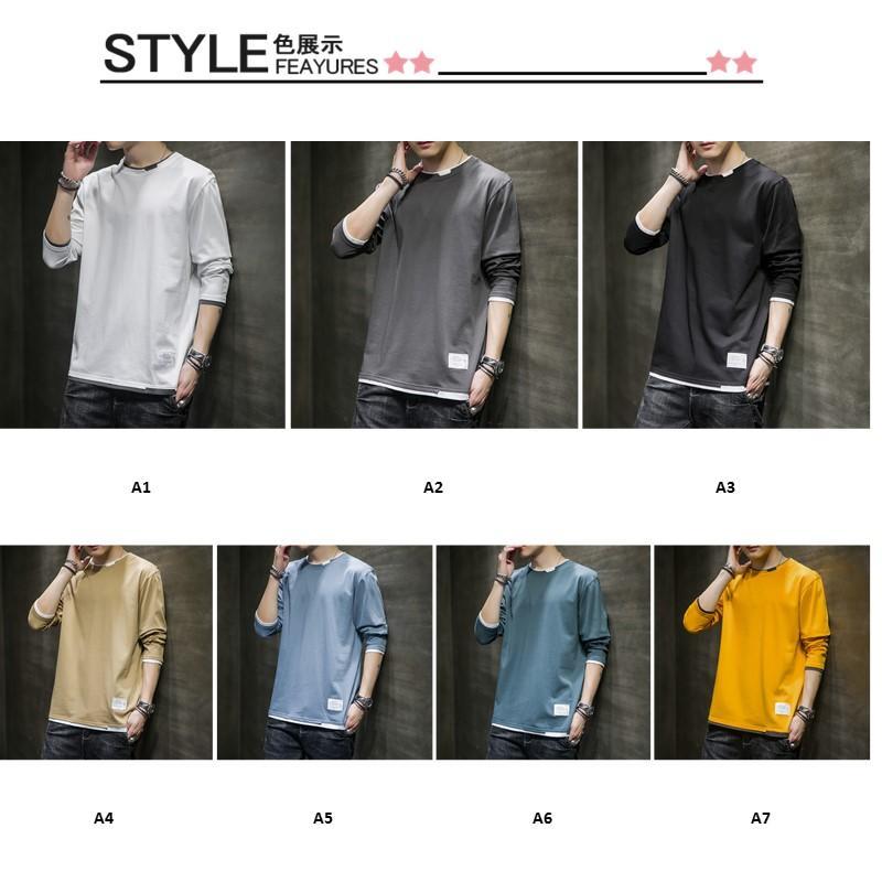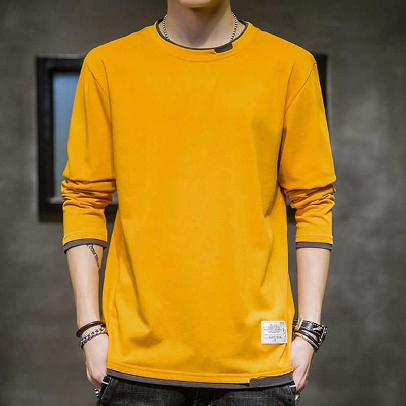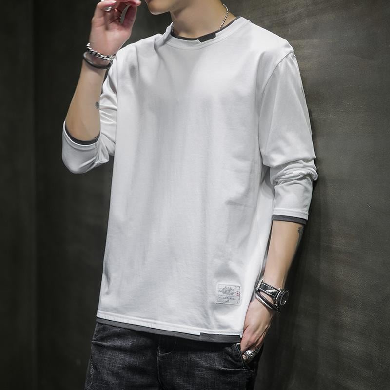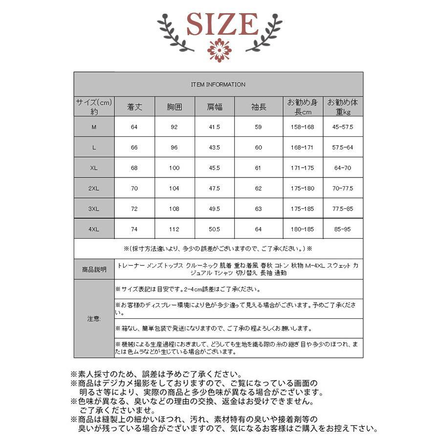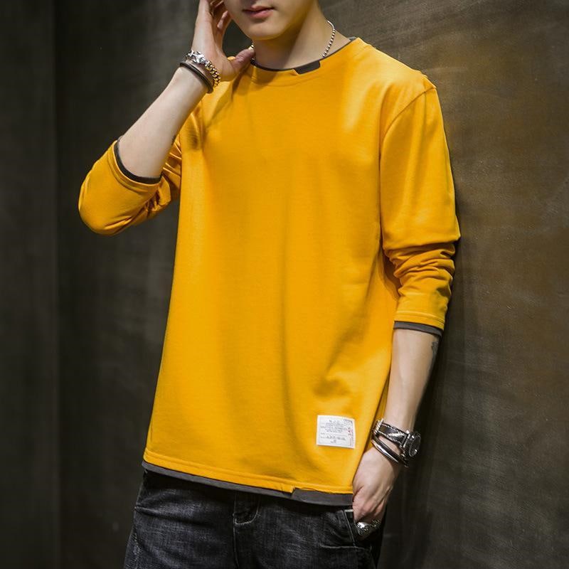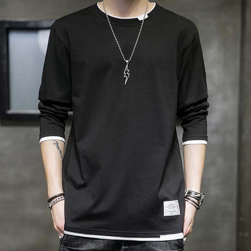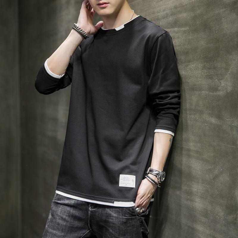 人気沸騰 新品 トレーナー メンズ トップス クルーネック 肌着 重ね着風 春秋 コトン 秋物 M-4XL スウェット カジュアル Tシャツ 切り替え 長袖 通勤