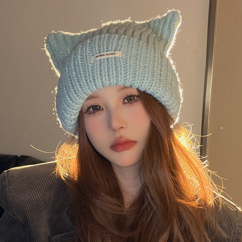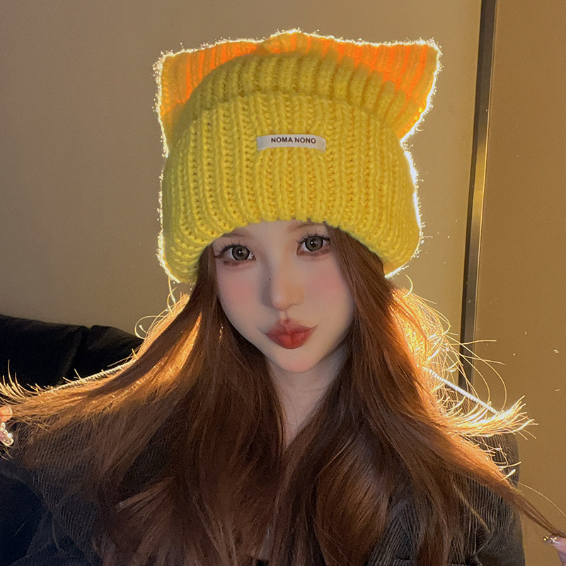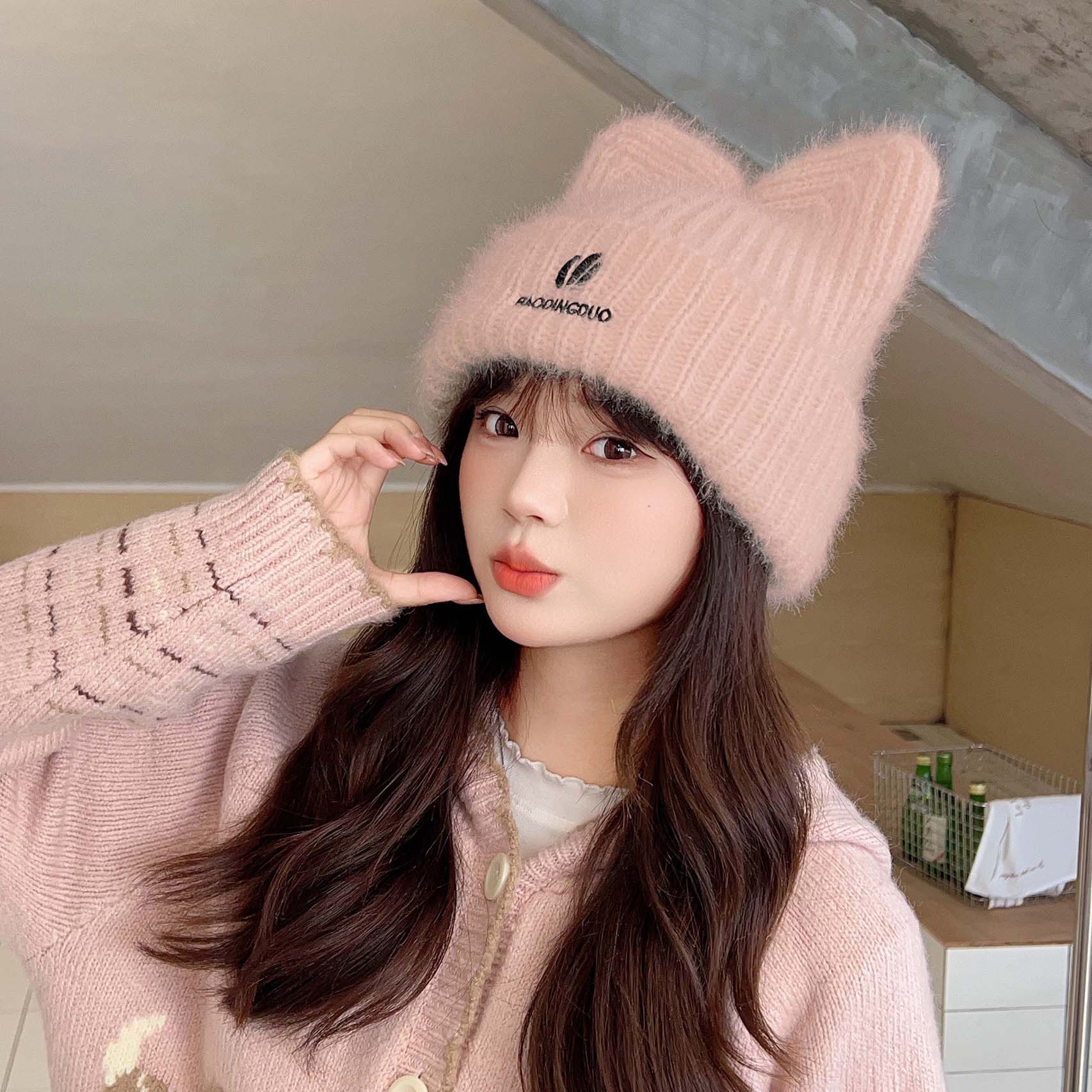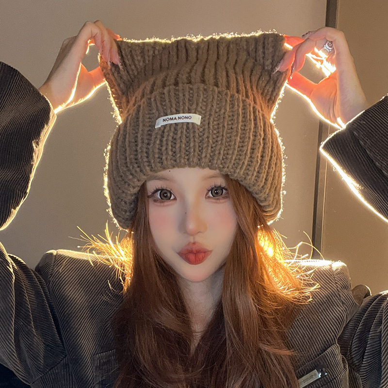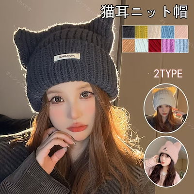 帽子 女優帽 冬 毛糸キャップ暖かい 韓国 レディースファッション 新型かわいい猫耳 ニット帽 が厚くて保温していますニット ニット帽