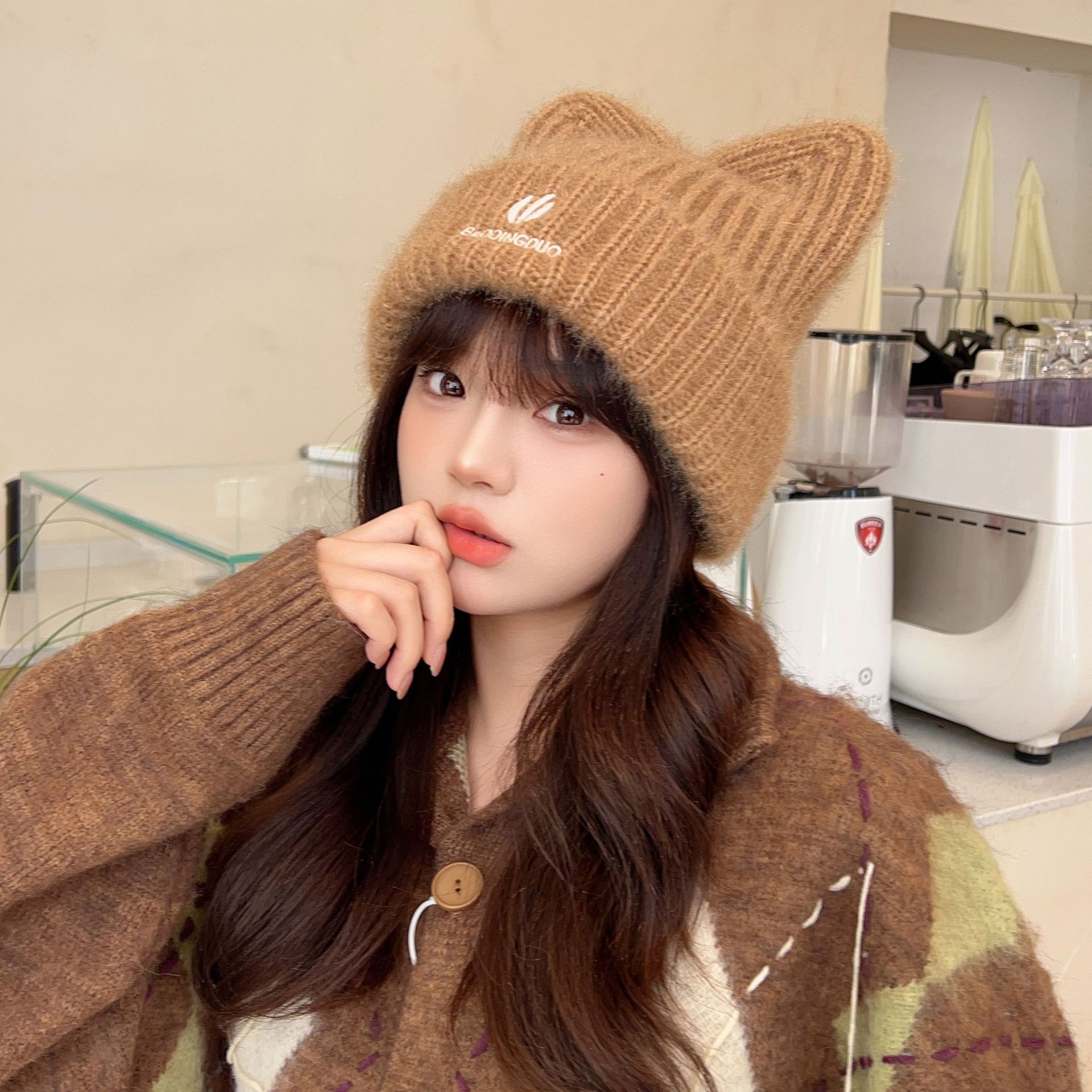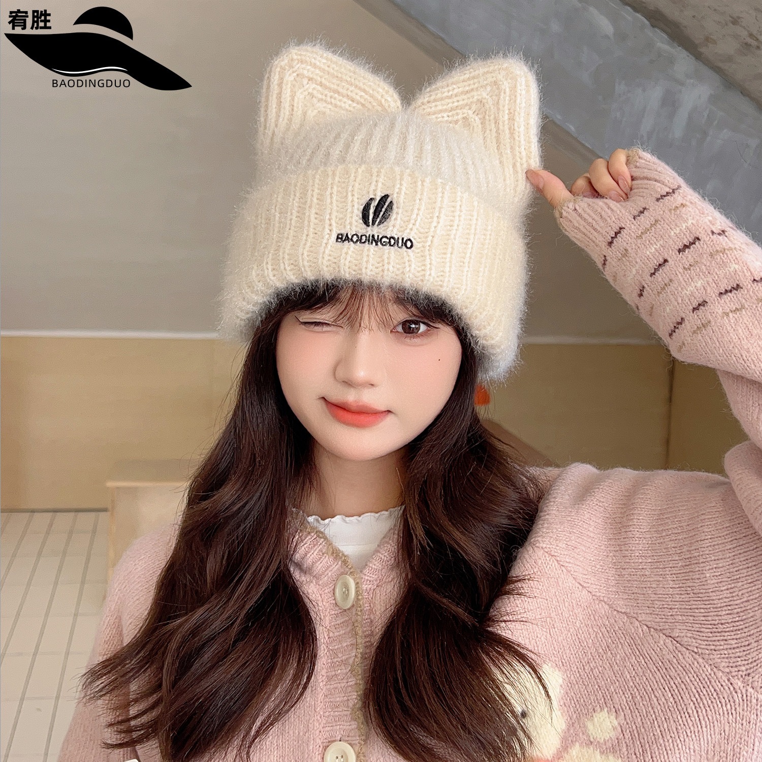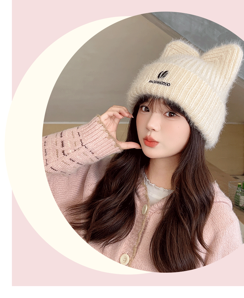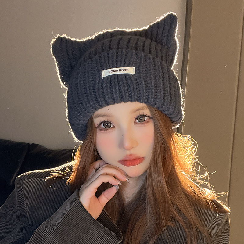 帽子 女優帽 冬 毛糸キャップ暖かい 韓国 レディースファッション 新型かわいい猫耳 ニット帽 が厚くて保温していますニット ニット帽