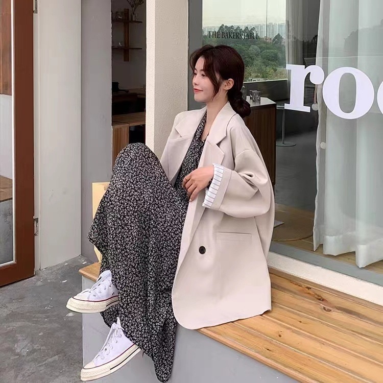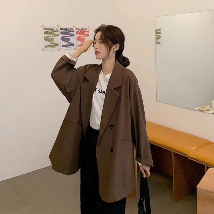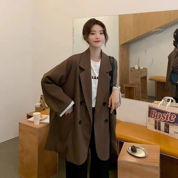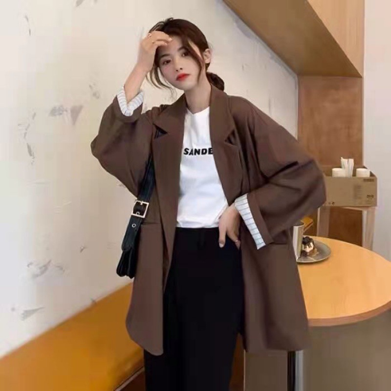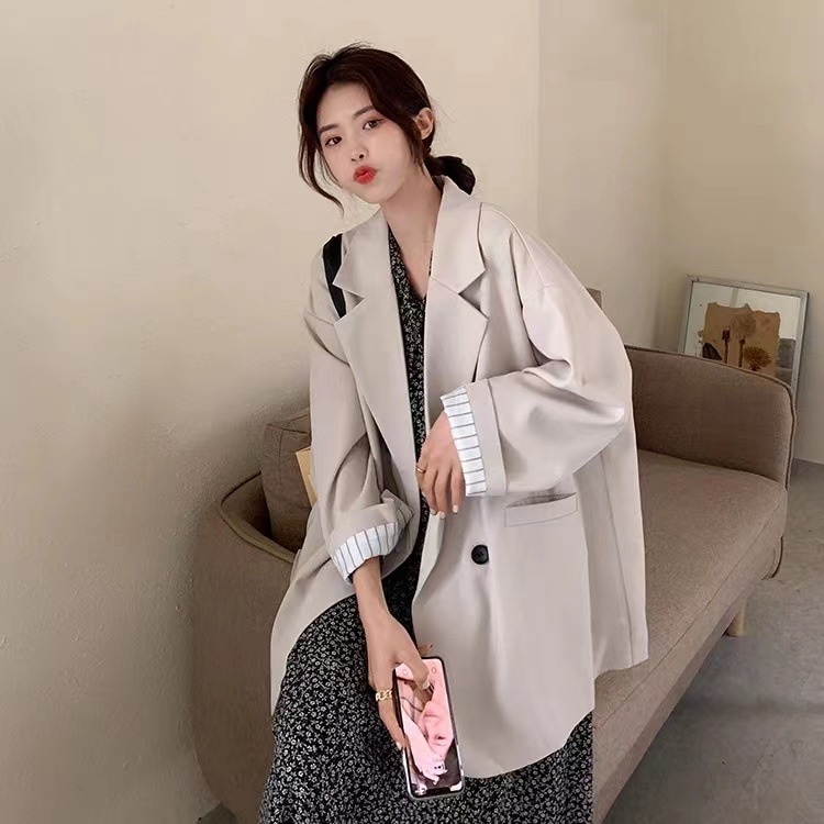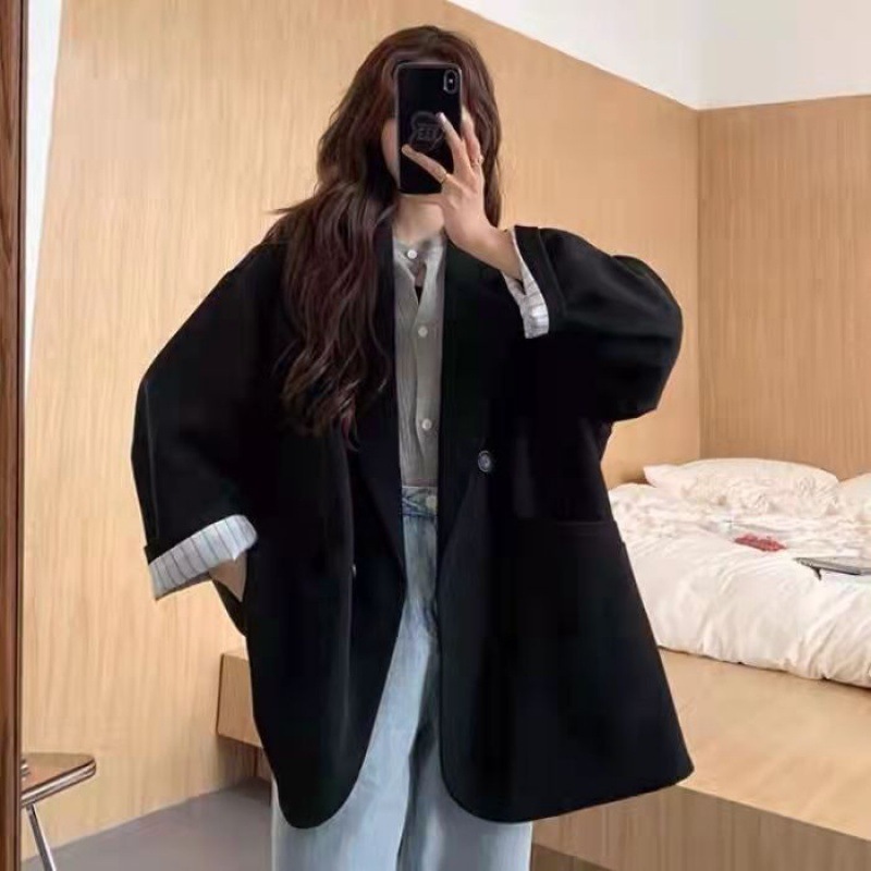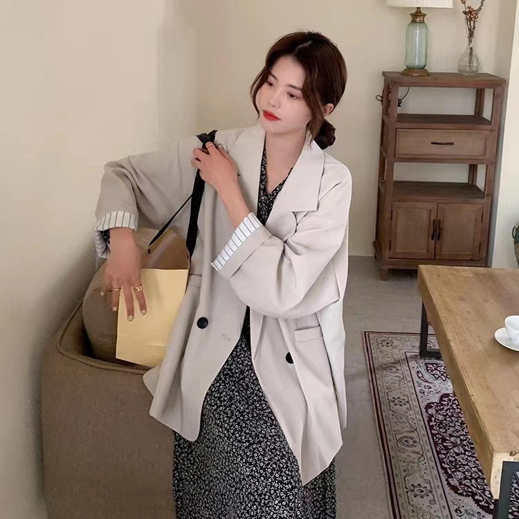 秋の新型韓国版ゆるい縞の中で黒いカジュアルスーツの女性のカジュアルコートの女性のスーツ その他 スーツ