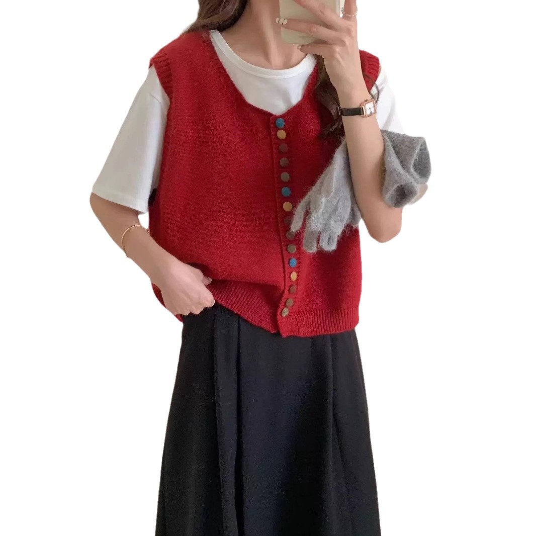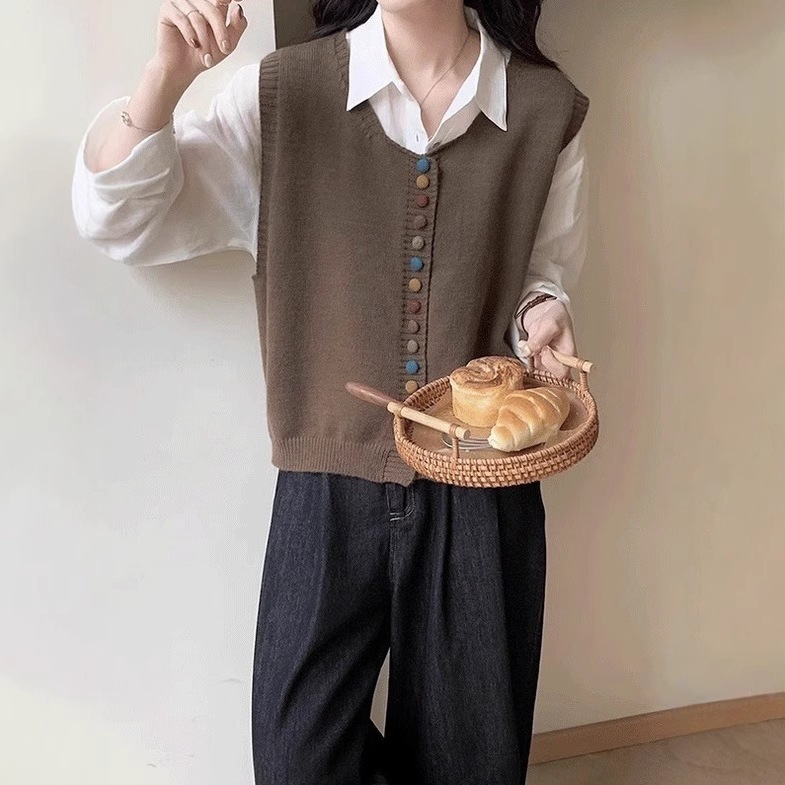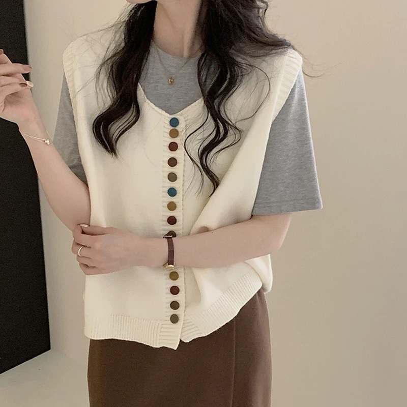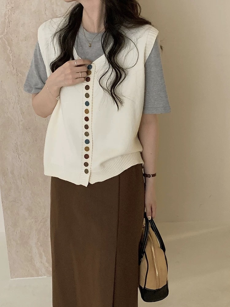 ニットベスト レディース Vネック 春 秋 前開き ベスト トップス カーディンガン ニット ノースリーブ セーター レイヤード 重ね着 ゆったり 大きいサイズ 体型カバー カジュアル