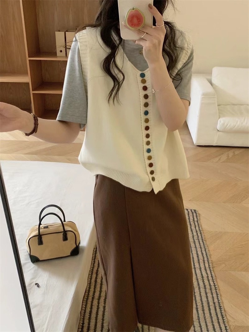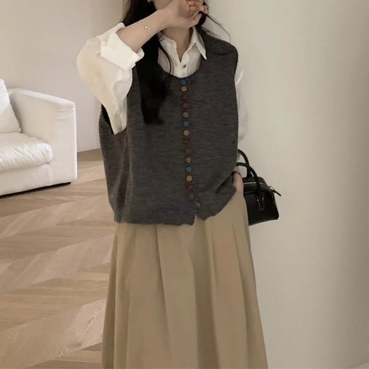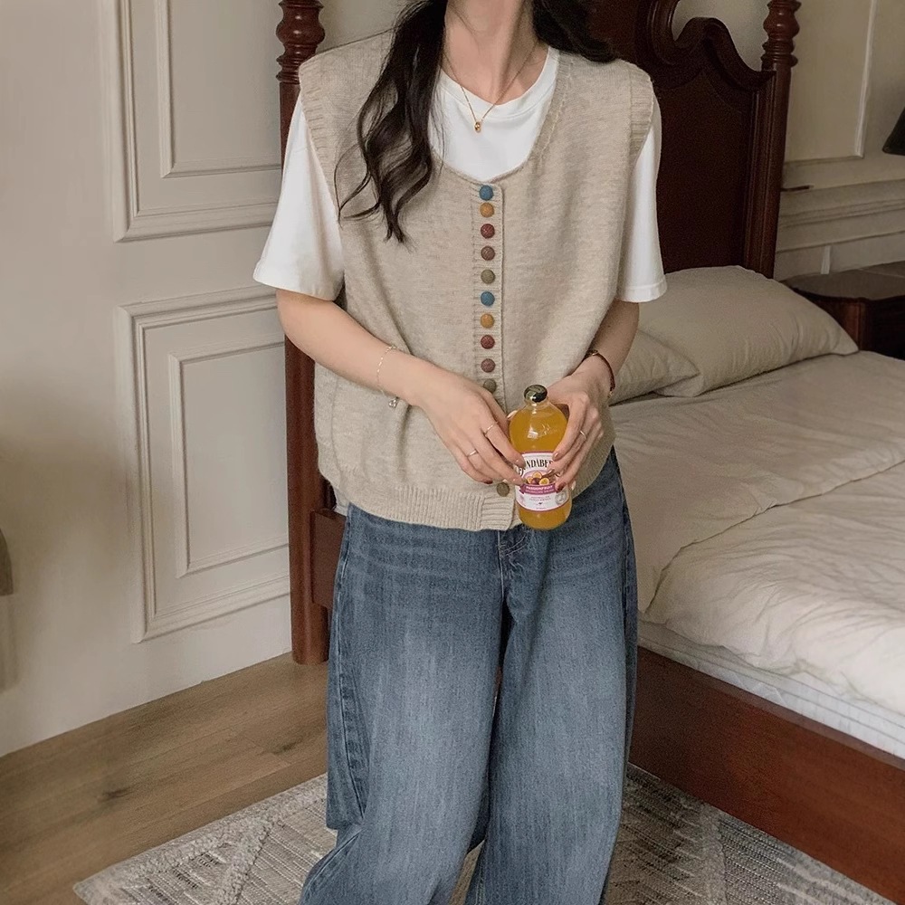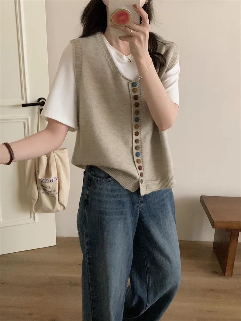 ニットベスト レディース Vネック 春 秋 前開き ベスト トップス カーディンガン ニット ノースリーブ セーター レイヤード 重ね着 ゆったり 大きいサイズ 体型カバー カジュアル