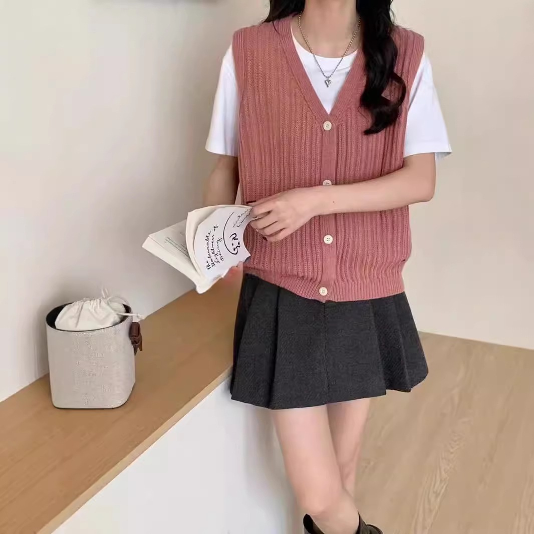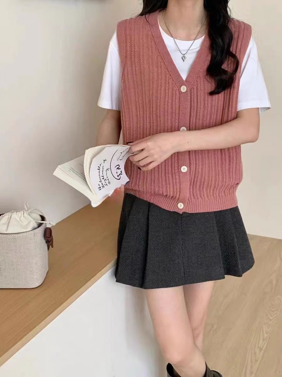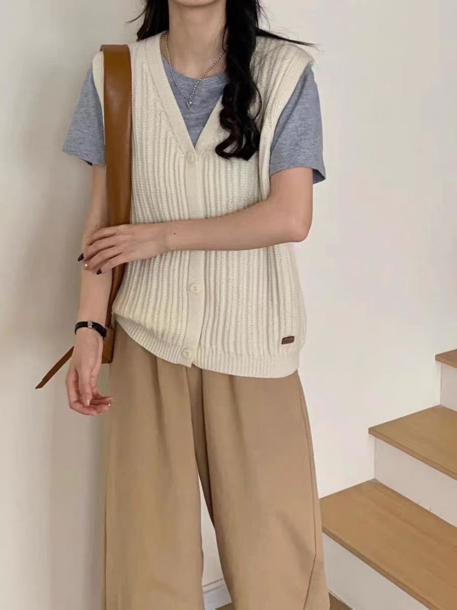ニットベスト レディース Vネック 春 秋 前開き ベスト トップス カーディンガン ニット ノースリーブ セーター レイヤード 重ね着 ゆったり 大きいサイズ 体型カバー カジュアル