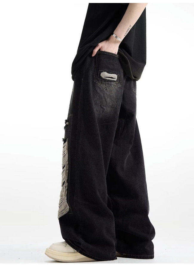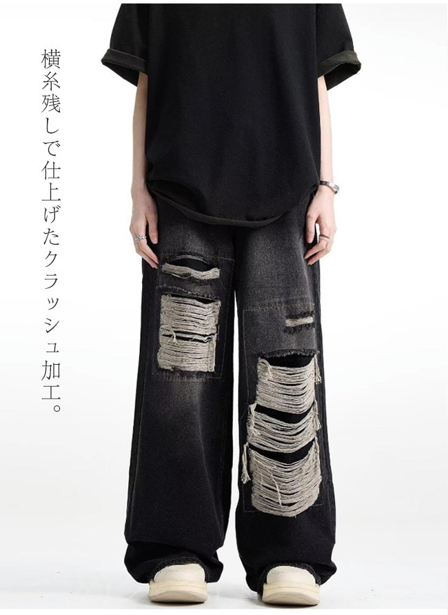 新作】デニムパンツ メンズ ジーンズ ストレート ワイドパンツ ダメージ加工 ロングパンツ ゆったり カジュアル ファッション 春秋 デニム ジーンズ